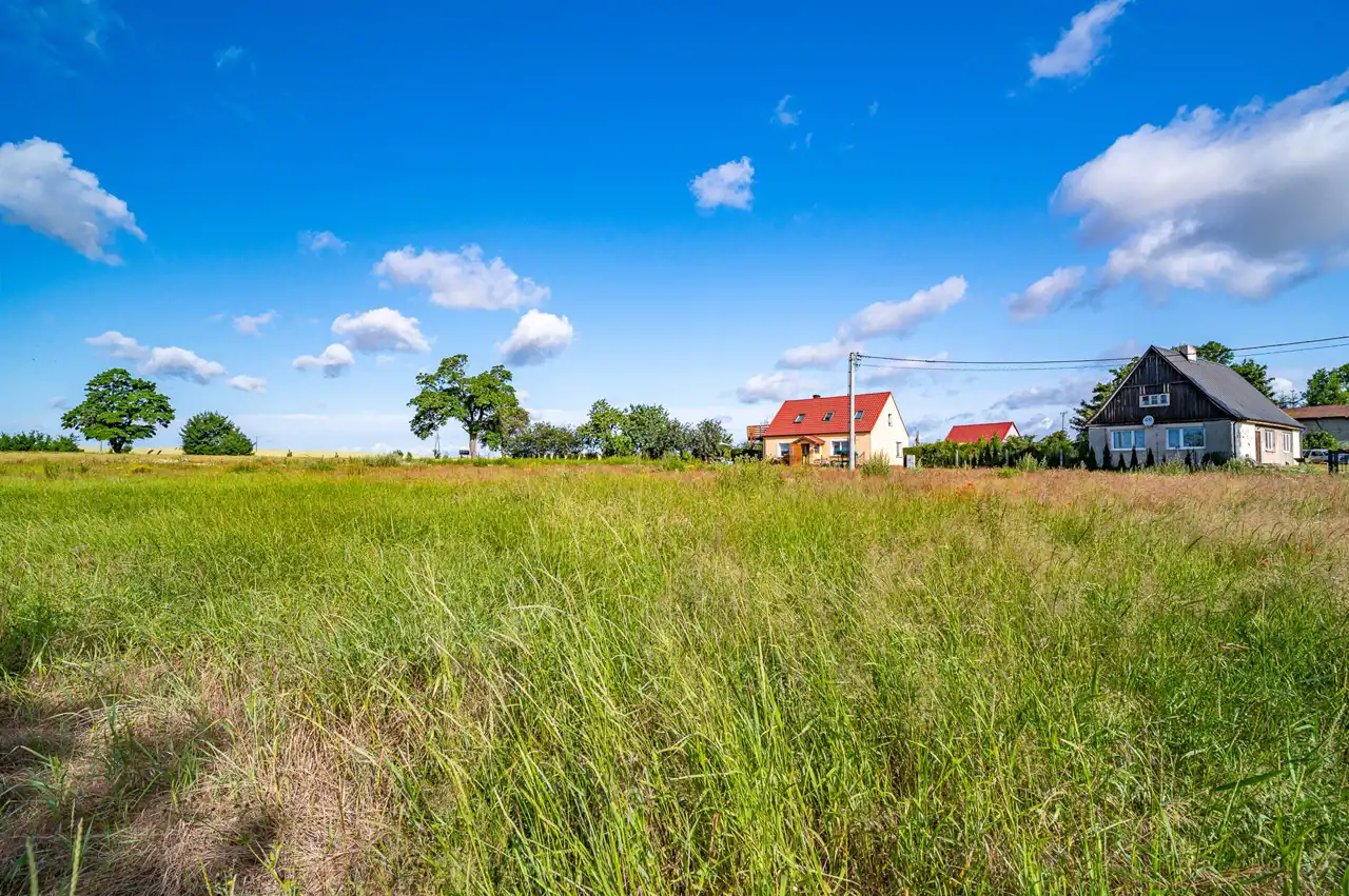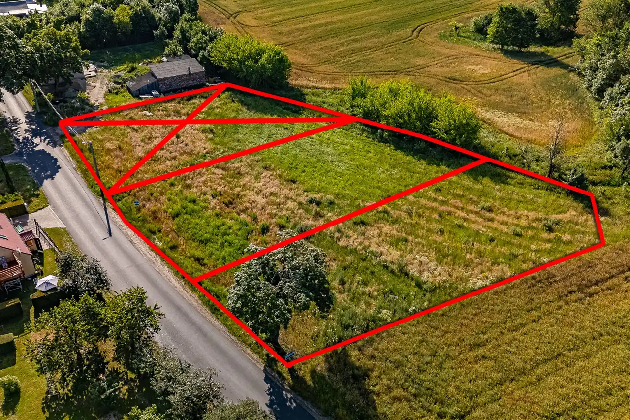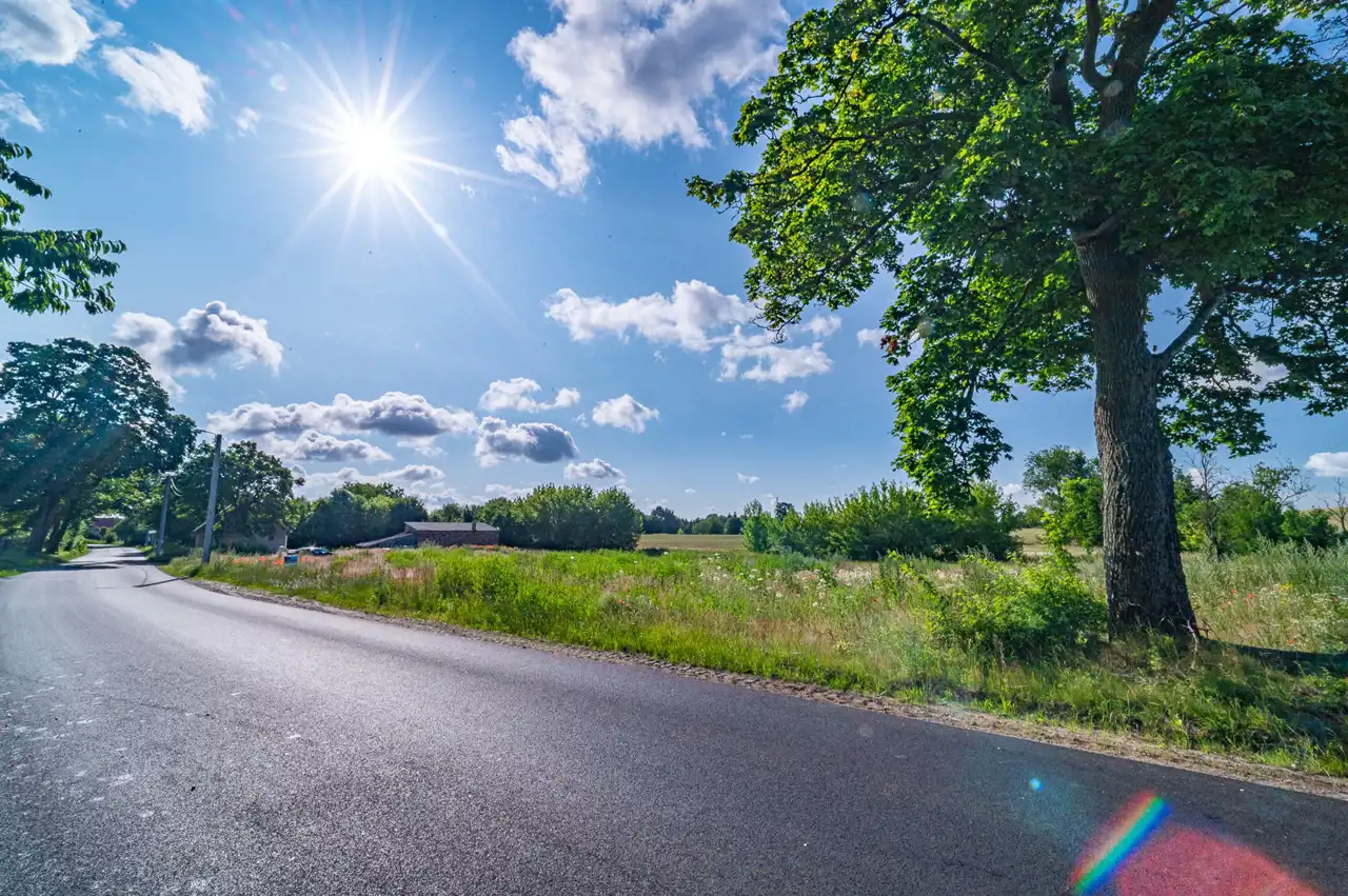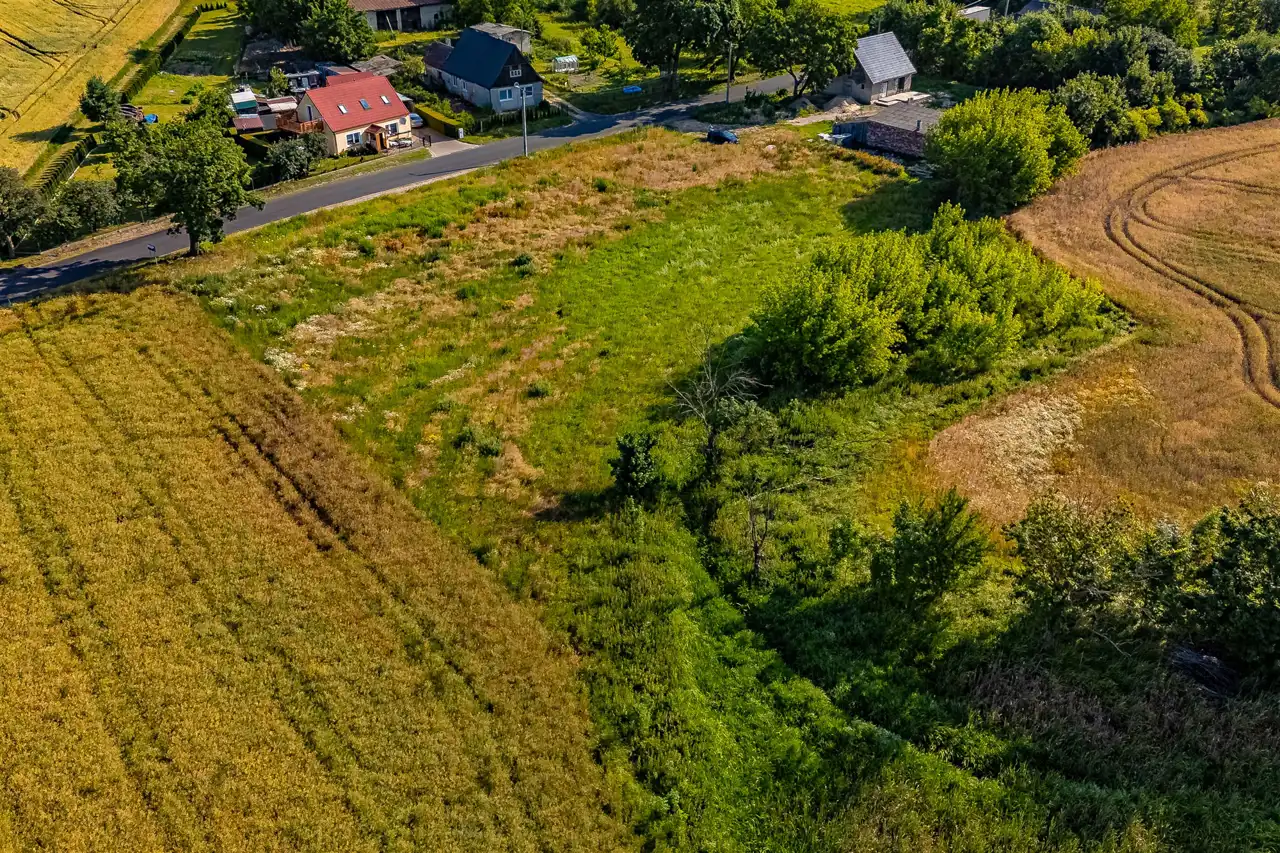 Tytułem oferty jest działka budowlana położona na obrzeżach wsi.