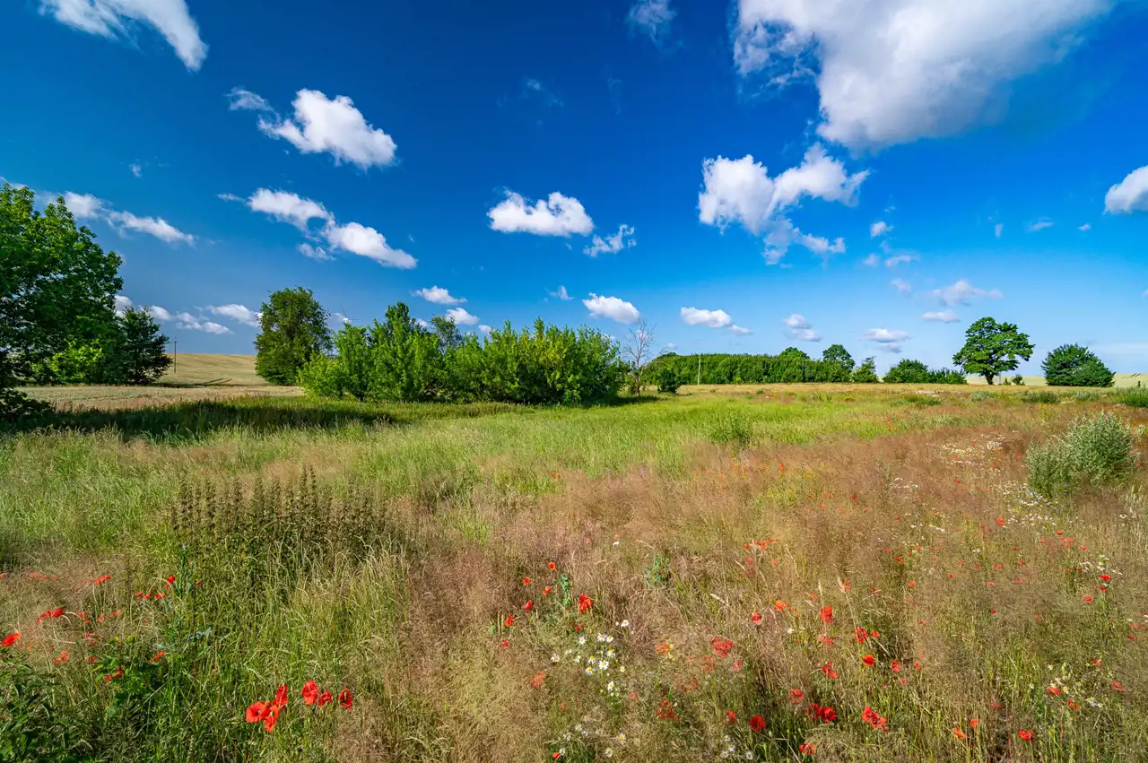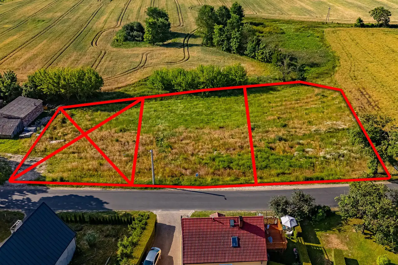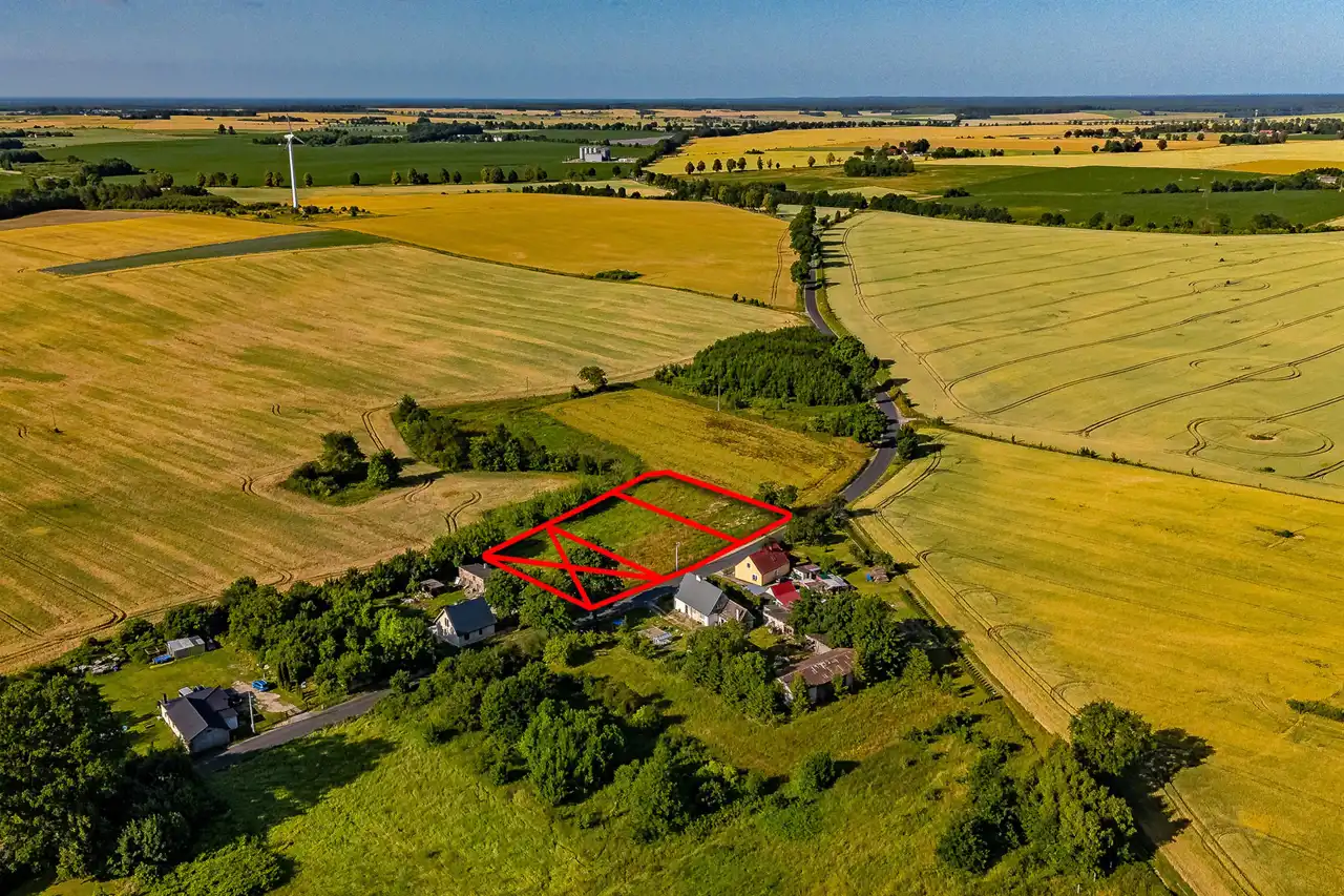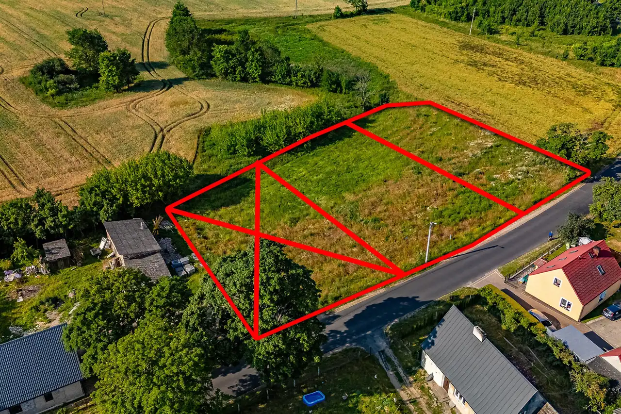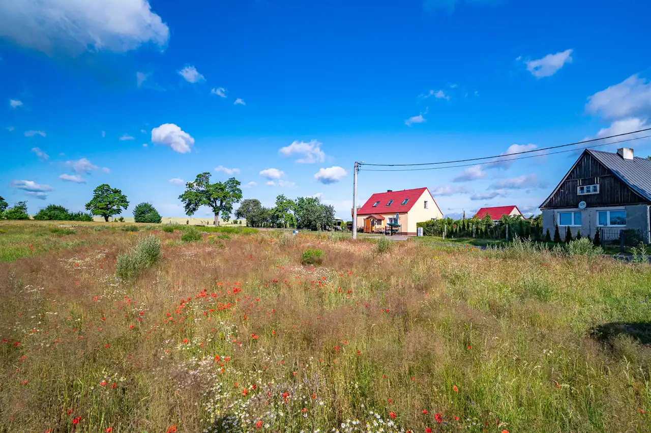 Tytułem oferty jest działka budowlana położona na obrzeżach wsi.