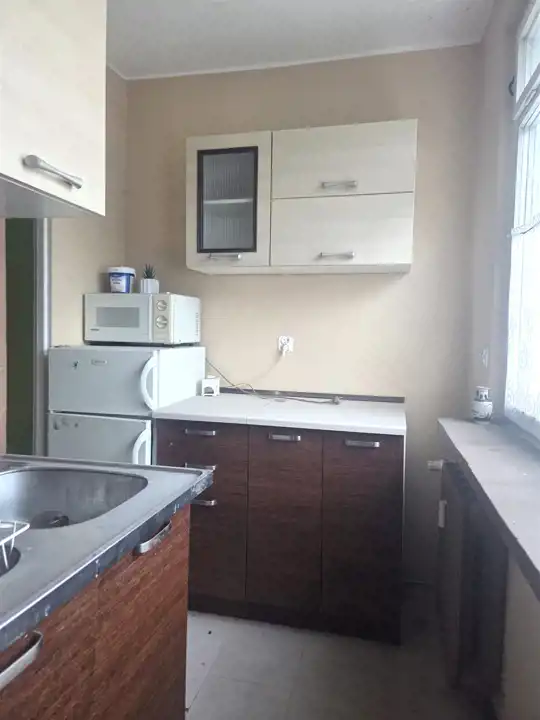 Pokój przestronny, ustawny w kształcie prostokąta z dużym oknem. Kuchnia jest wyposażona w kuchenkę z piekarnikiem oraz meble. Istnieje możliwość połączenia obu tych powierzchni i stworzenie dużej przestrzeni saloniku z aneksem kuchennym.