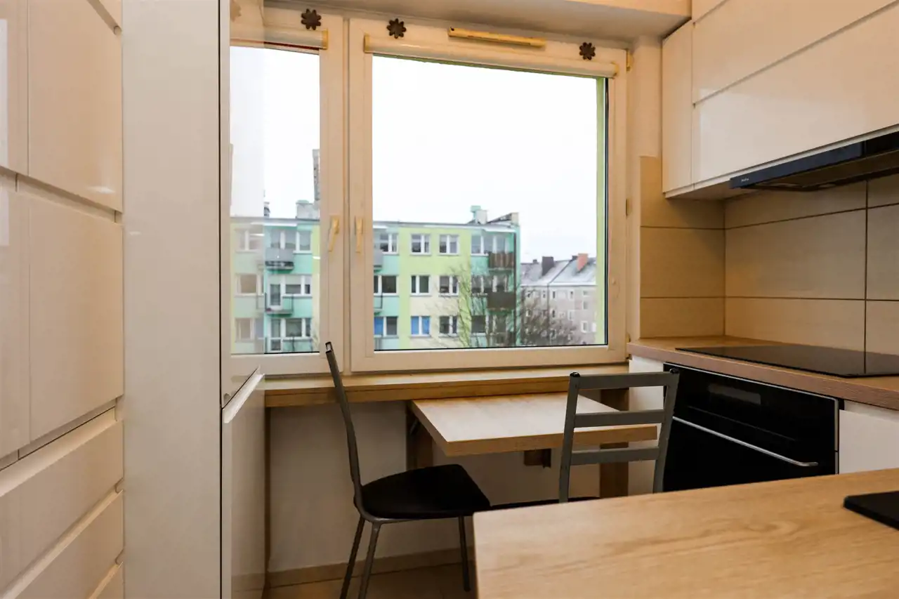 Większy pokój z wyjściem na balkon pełni funkcję wygodnego salonu, mniejszy to komfortowa sypialnia, ale doskonale sprawdzi się jako pokój dziecięcy bądź biuro.