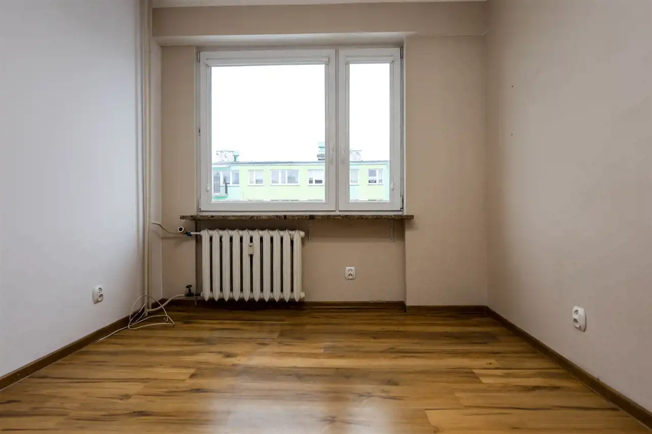 Na podłogach w sypialniach i korytarzu panele, natomiast w kuchni i łazience kafelki. Odmalowane, zadbane. W pokojach solidne, granitowe parapety.