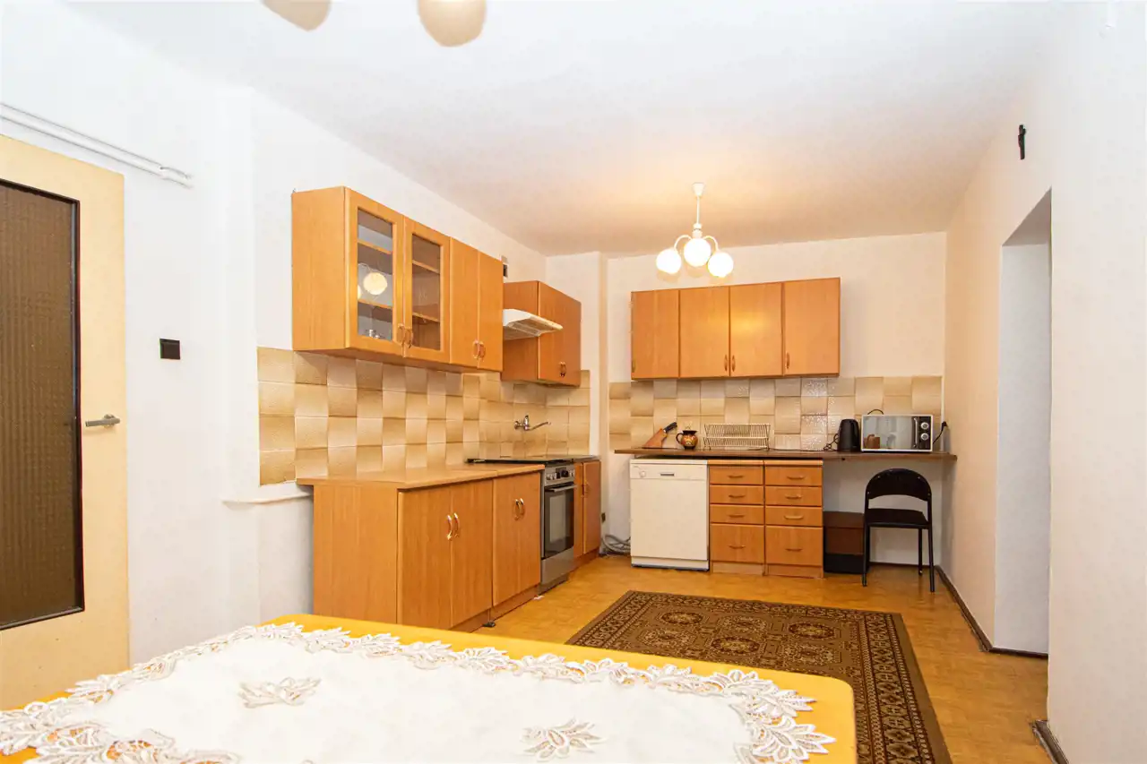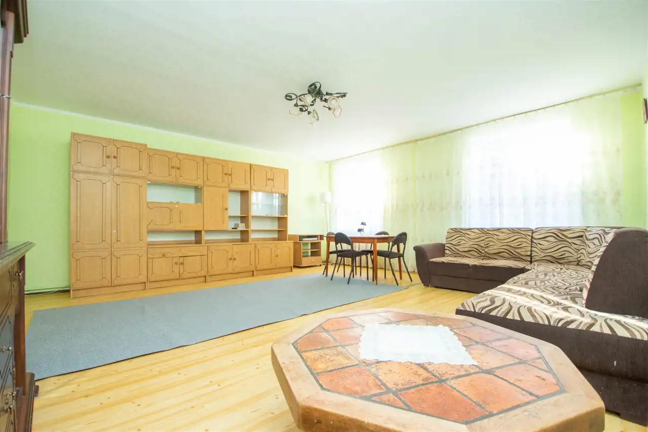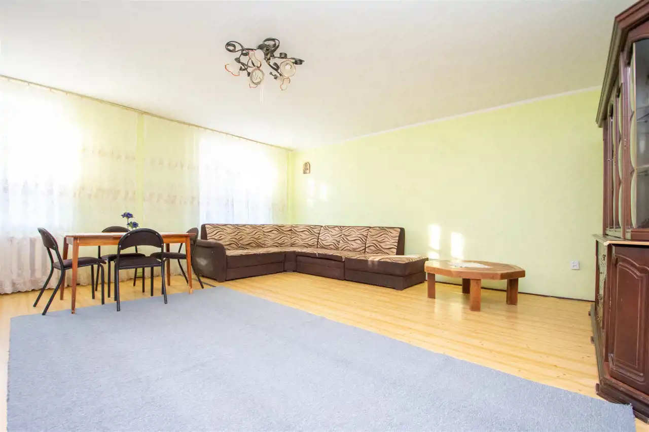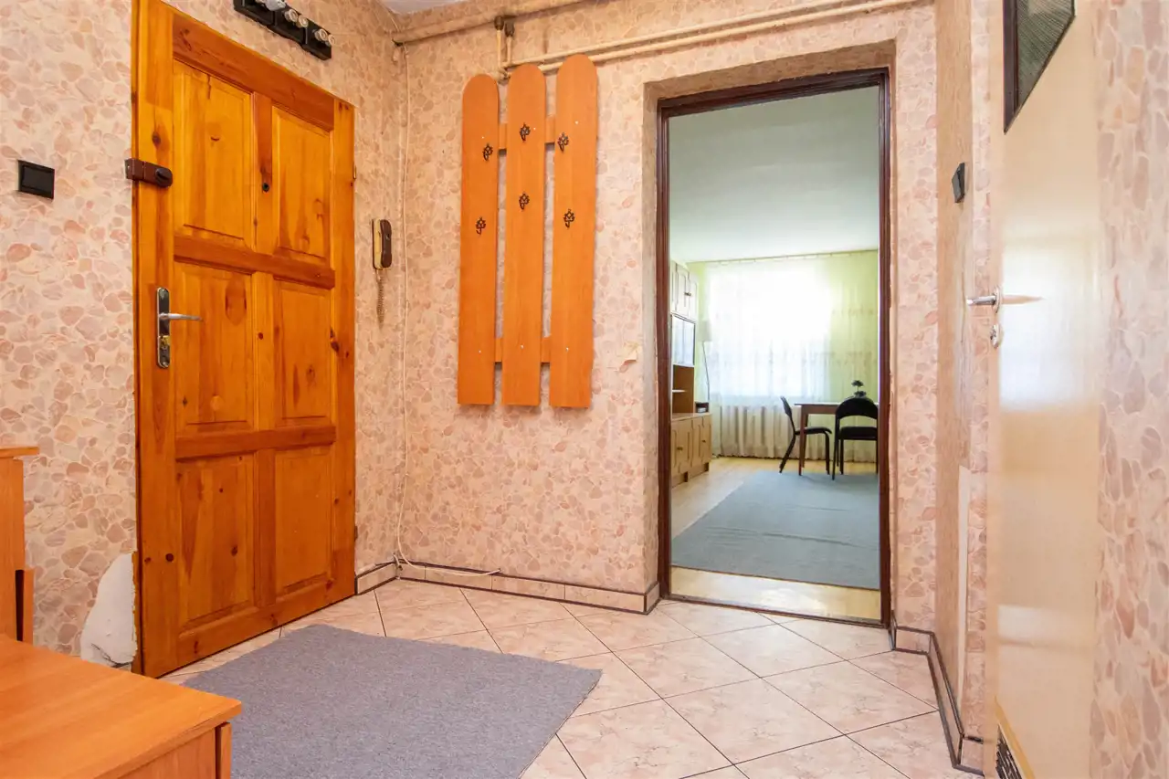 Mieszkanie składa się z trzech przestronnych pokoi, kuchni, łazienki z WC oraz przedpokoju. Jest w pełni umeblowane oraz wyposażone.