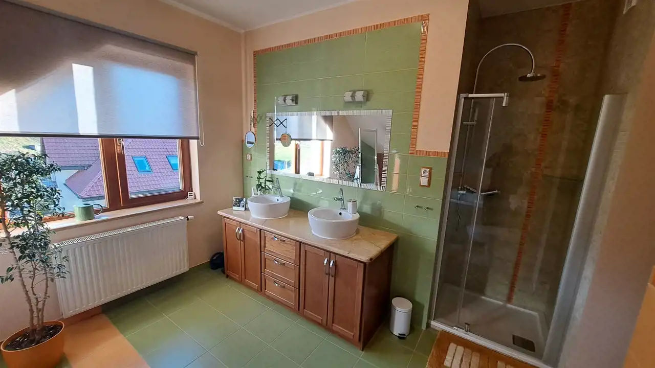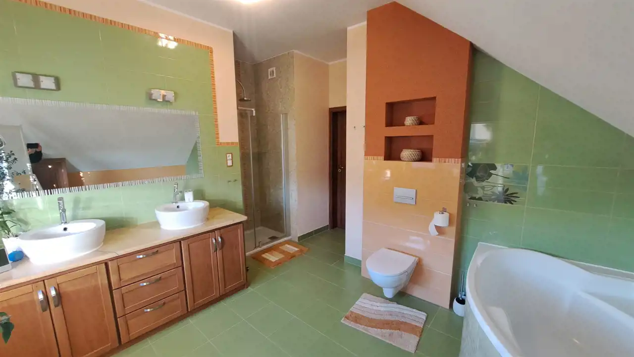 - łazienka z wanną i kabiną prysznicową