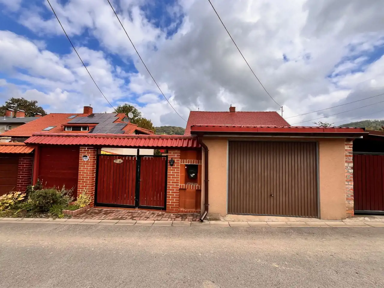 Od Frontu działka na której posadowiony jest budynek ogrodzona jest ładnym, zadbanym, murowanym płotem z drewnianą bramą wjazdową i bramką. Bezpośrednio od ulicy wjeżdża się do murowanego garażu.
