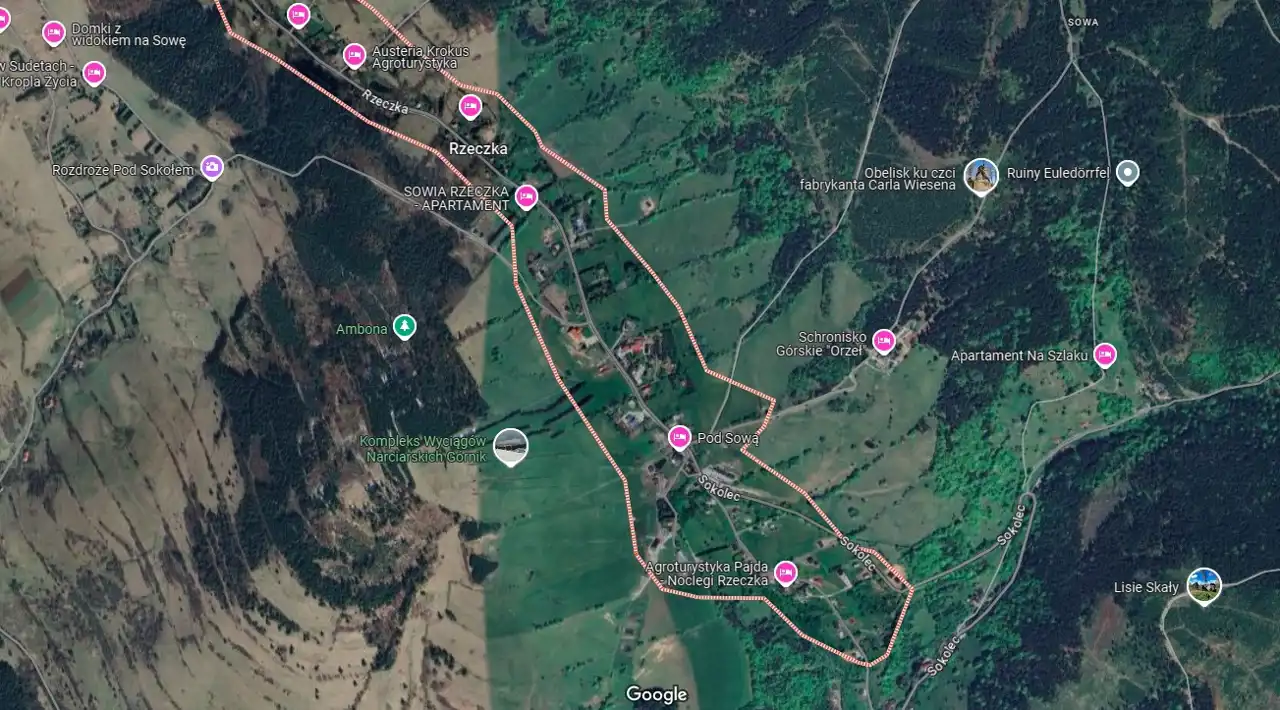 Działka położona w pobliżu Parku Krajobrazowego Gór Sowich, niedaleko szlak na Górę Sowę, nieopodal są wyciągi narciarskie.