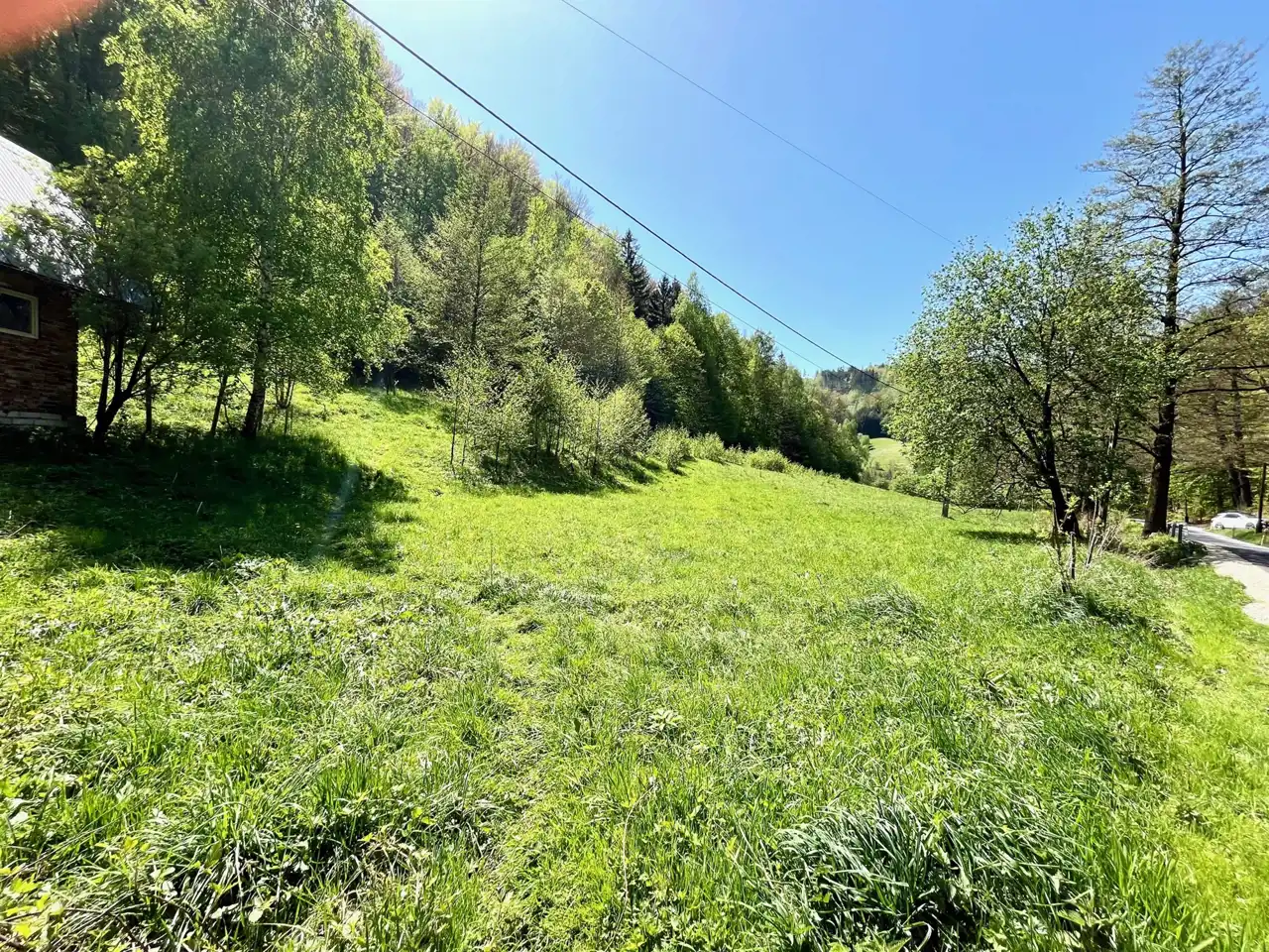 Parcela o wielkości 8700 m2 o nieregularnym kształcie, położona jest na zboczu góry o lekkim nachyleniu. Zadbana ograniczona ciekiem wodnym i drogą asfaltową idealne nadaje się dla osób ceniących spokój i kontakt z naturą.