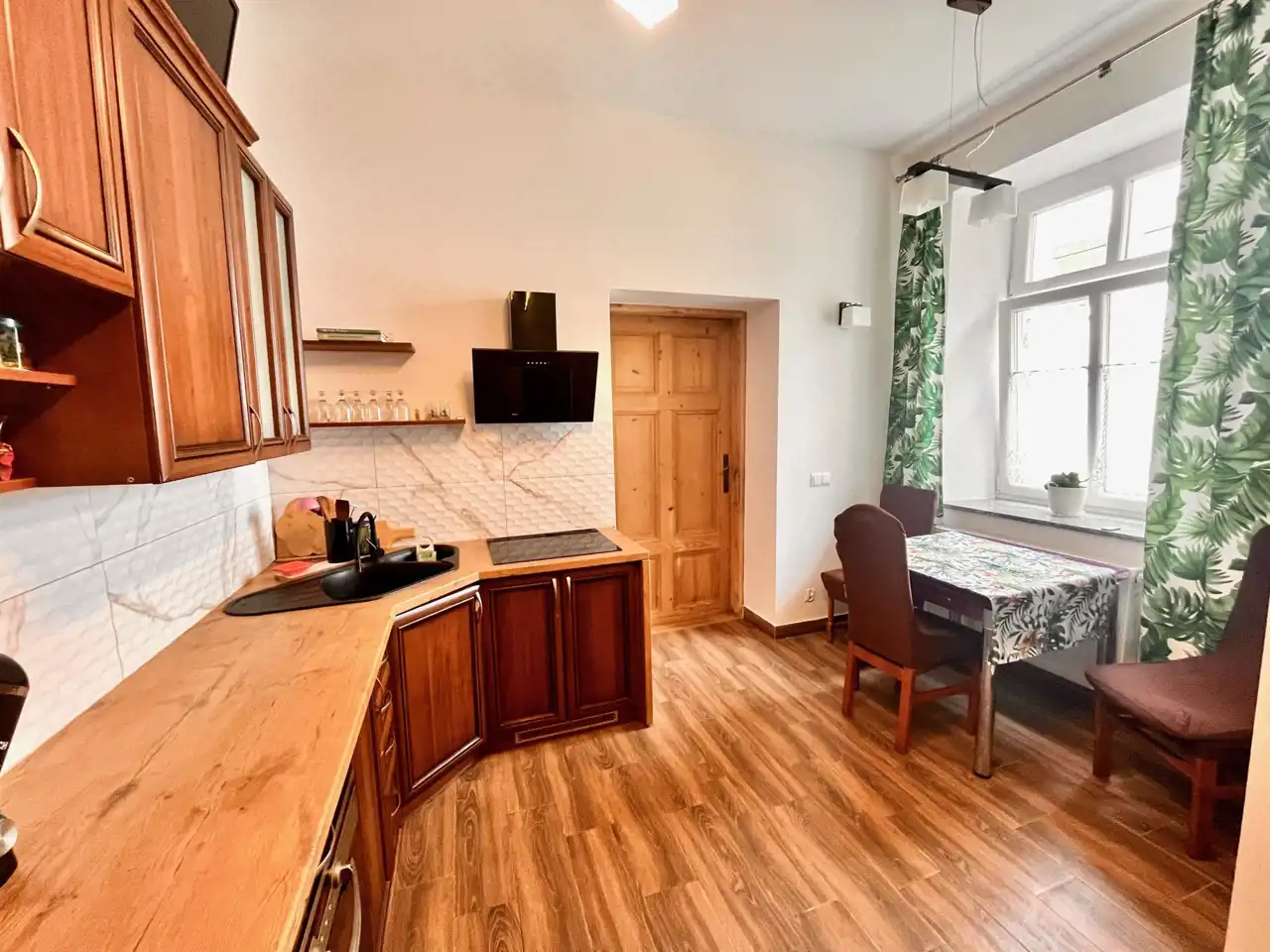 W tej ofercie proponuję na sprzedaż spore, jednopokojowe mieszkanie z widną kuchnią i osobnym wejściem prosto z podwórza, usytuowane na parterze w budynku wielorodzinnym z lat 30 - tych przy ulicy Kościuszki (jest to ulica prowadzącą na Przełęcz Walimską, z której początek bierze kilka widokowych szlaków prowadzących na Wielką sowę i cały masyw Gór Sowich).