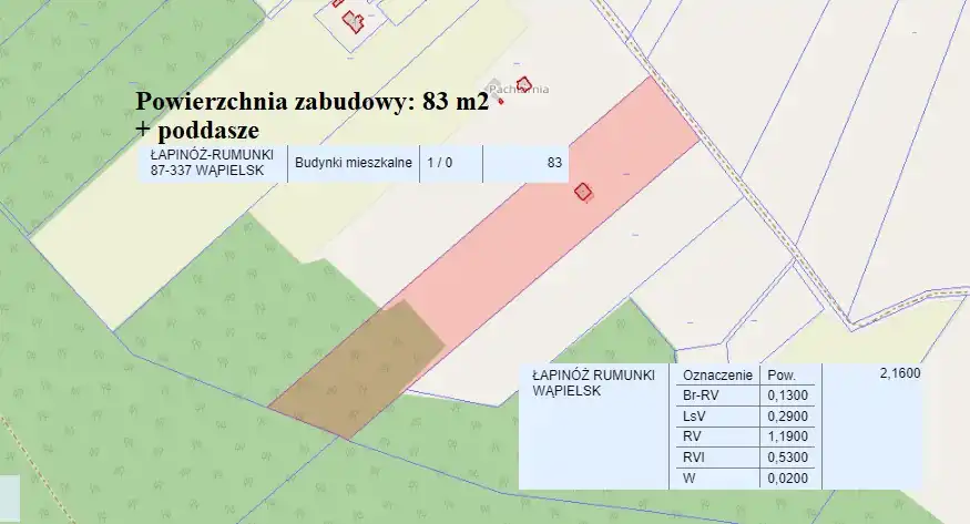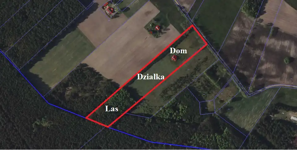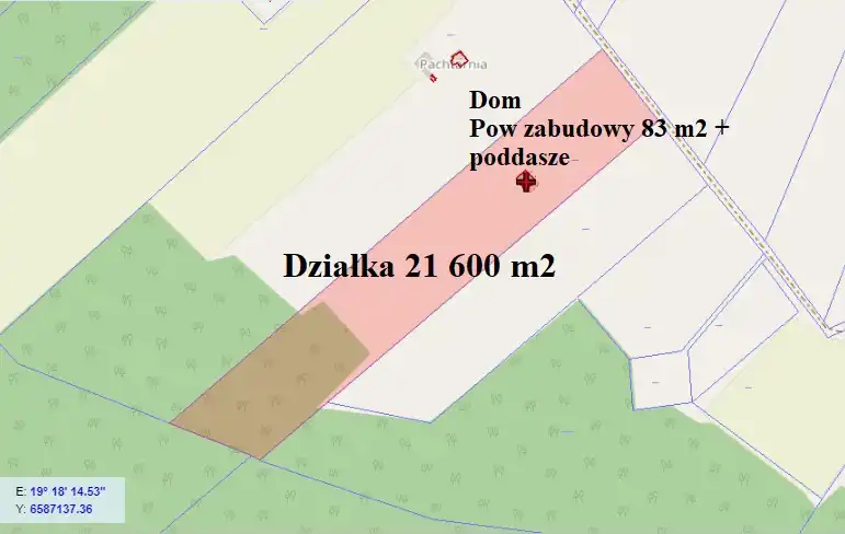 Zadrzewiona powierzchnia działki zajmuje około 7200 m2 w tym stary las około 3000 m2 i młodszy ok 20 letni 4200 m2 – drewna z pewnością wystarczy do ogrzania domu.