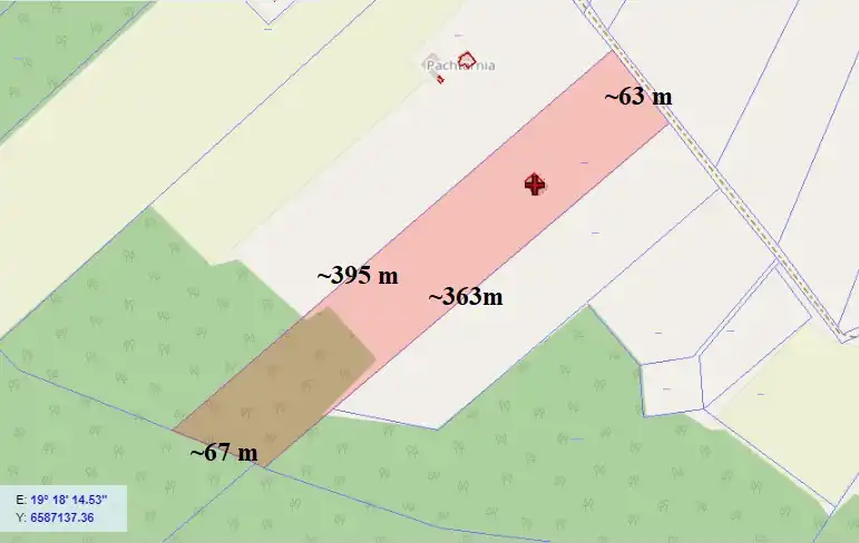 - Działka częściowo zagospodarowana, płaska, prostokąt