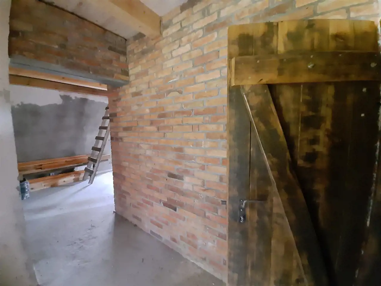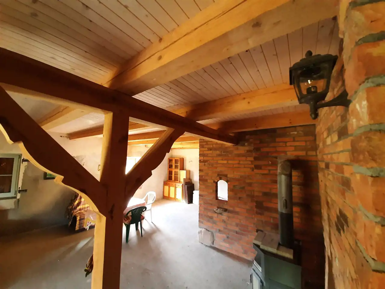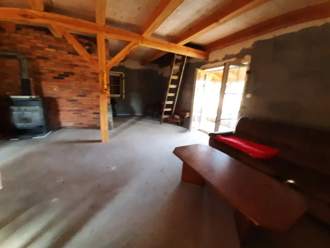 Dom w stanie do wykończenia: na parterze duża otwarta przestrzeń, salon z kuchnią oraz łazienka.
