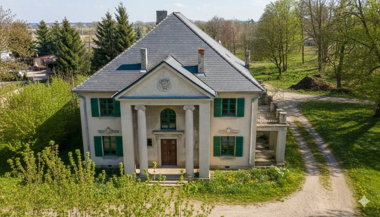 Z ogromną dumą prezentujemy ofertę sprzedaży klasycystycznego dworu w Półwiesku Małym, wzniesionego w pierwszej połowie XIX wieku (ok. 1813 r.). Ta monumentalna, piętrowa budowla o powierzchni ok. 350 m², murowana z cegły, stanowi doskonały przykład architektury rezydencjonalnej tamtego okresu.
