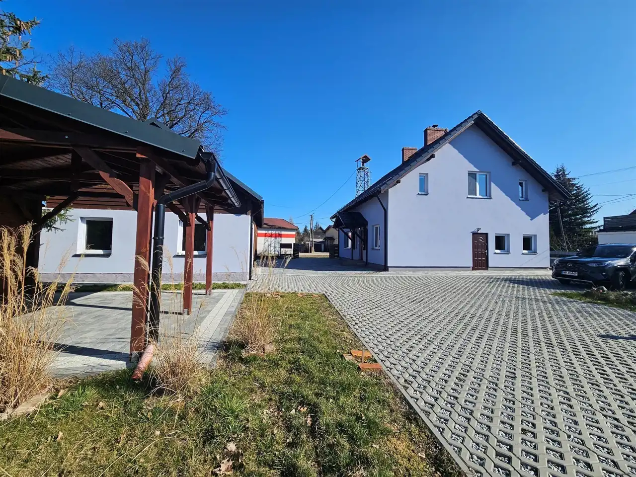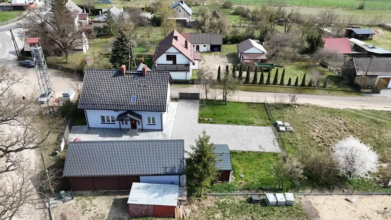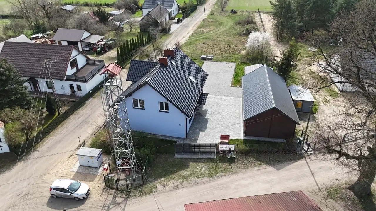 Dom znajduje się na działce o powierzchni 882 m2, położonej w centralnej części miejscowości, z dobrym dojazdem drogą asfaltową oraz bliskim sąsiedztwie lasu. Cała posiadłość jest ogrodzona i zamknięta bramą wjazdową, teren utwardzony kostką. Zabudowania gospodarcze stanowią dodatkowe miejsce do przechowywania samochodu oraz rzeczy należących do mieszkańców.