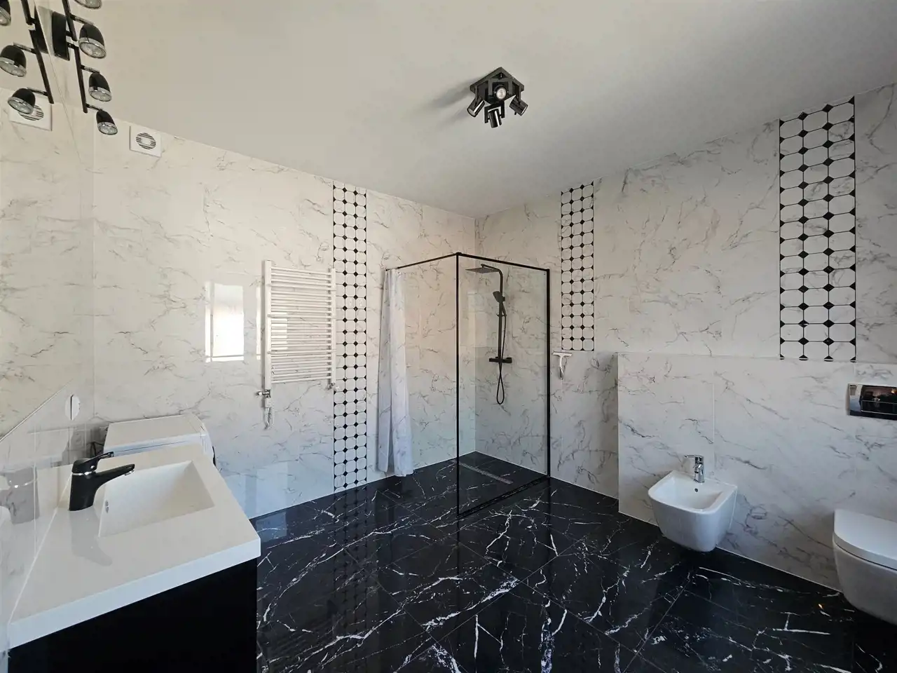 - salon, kuchnia, 3 łazienki, 5 pokoi