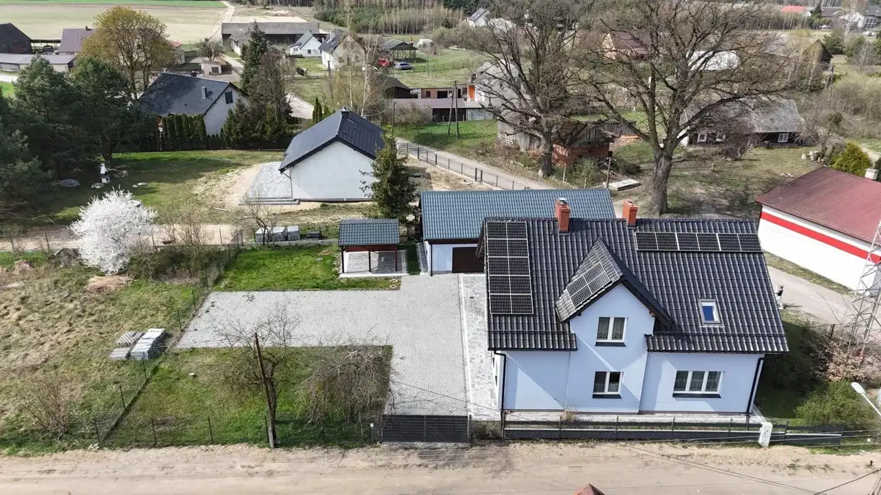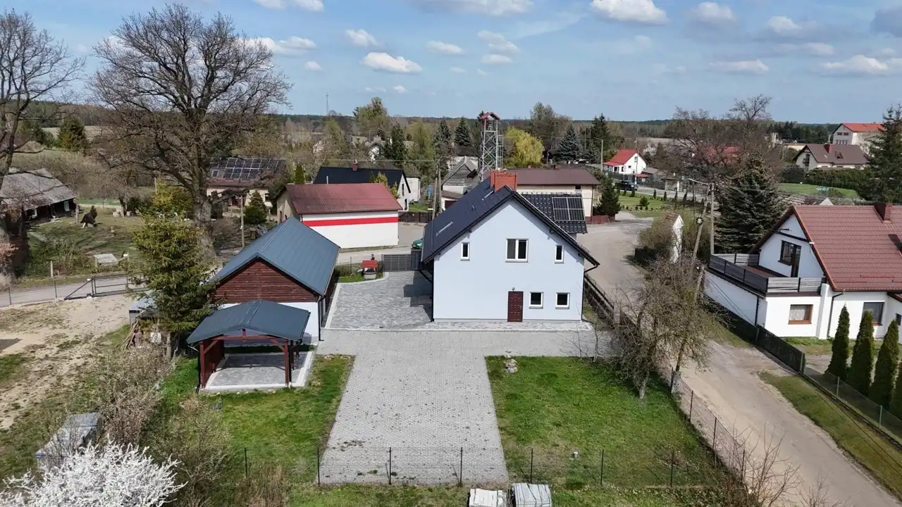 Dom znajduje się na działce o powierzchni 882 m2, położonej w centralnej części miejscowości, z dobrym dojazdem drogą asfaltową oraz bliskim sąsiedztwie lasu. Cała posiadłość jest ogrodzona i zamknięta bramą wjazdową, teren utwardzony kostką. Zabudowania gospodarcze stanowią dodatkowe miejsce do przechowywania samochodu oraz rzeczy należących do mieszkańców.
