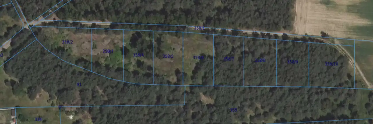 Do działek powadzi droga w udziałach . Na przeciwko są lasy Państwowe. Media takie jak: woda i prąd znajdują się na rogu drogi wjazdowej do działek .