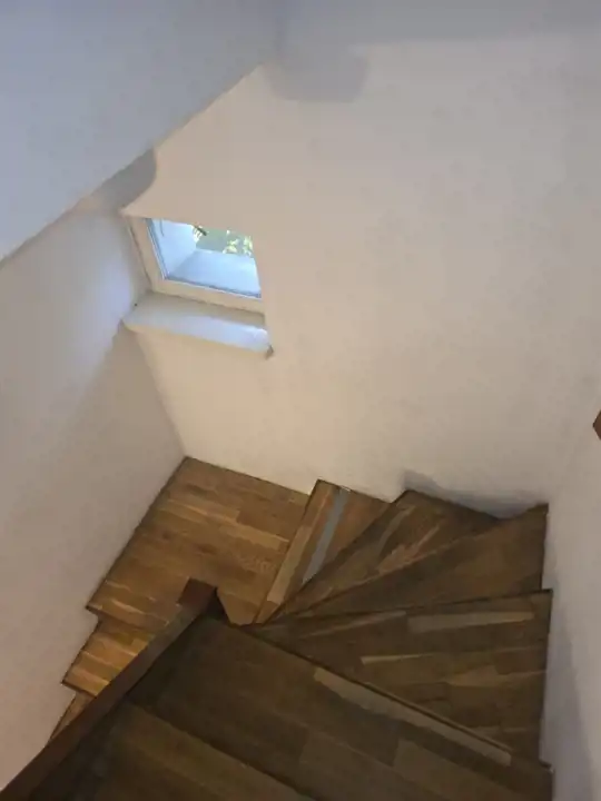 Klatka schodowa: schody wylewane, trepy wyłożone drewnem. ( parter około 67,1 mkw)