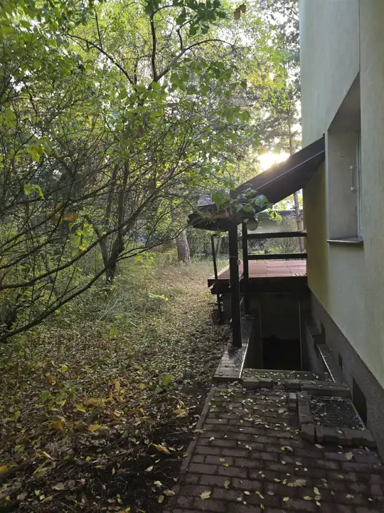 Budynek jednorodzinny podpiwniczony do remontu. Wybudowany w 1957 roku, rozbudowany i modernizowany 2005 roku i 2021 roku. W budynku zamontowane częściowo okna PCV i częściowo drewniane, instalacja wodna pcv, instalacje elektryczna częściowo do zrobienia, gazowa w dobrym stanie ( na bieżąco używana, działająca). Budynek otynkowany, ocieplony styropianem, dach spadowy pokryty częściowo gontem bitumicznym i papą. Stropy Kleina. Brak kanalizacji, jest szambo, ogrzewanie gazowe. Ogród częściowo zagospodarowany, trawnik, sosny, drzewa liściaste.
