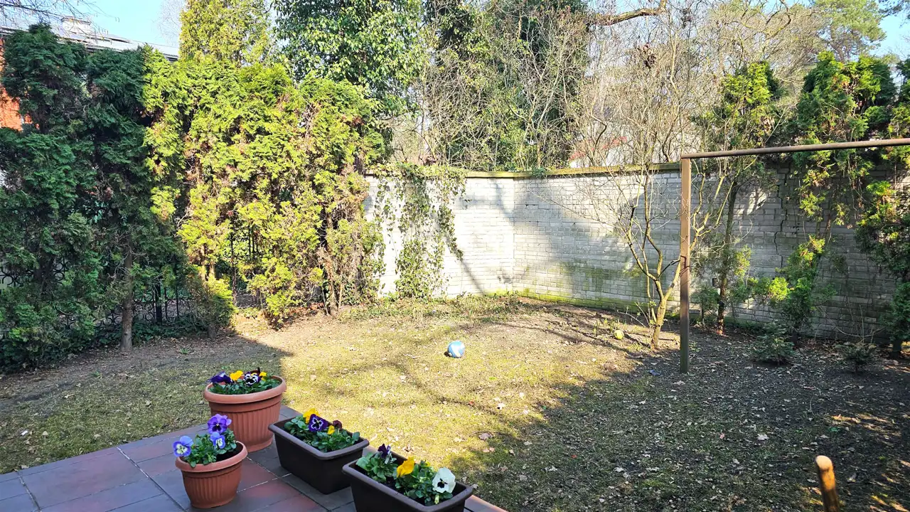 Dom posadowiony jest na działce o powierzchni 292 m², z kameralnym około 200-metrowym ogródkiem, który pozwala na stworzenie zielonej enklawy – miejsca odpoczynku z dala od miejskiego zgiełku, a jednocześnie w granicach Warszawy.