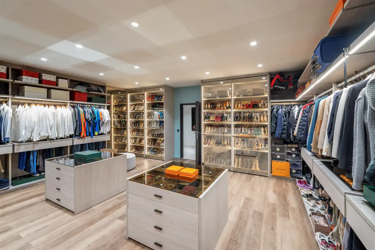 Kuchnia Arclinea zaprojektowana przez Antonio Citterio, garderoba typu walk-in o powierzchni 36 m² (Uecko), prywatna strefa wellness i rozrywki.