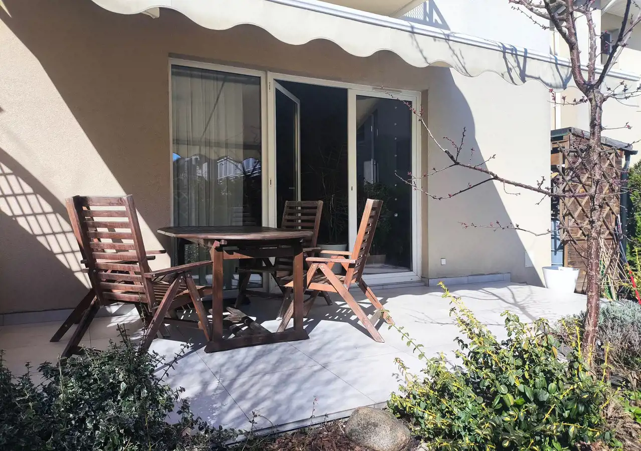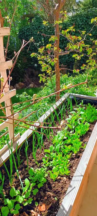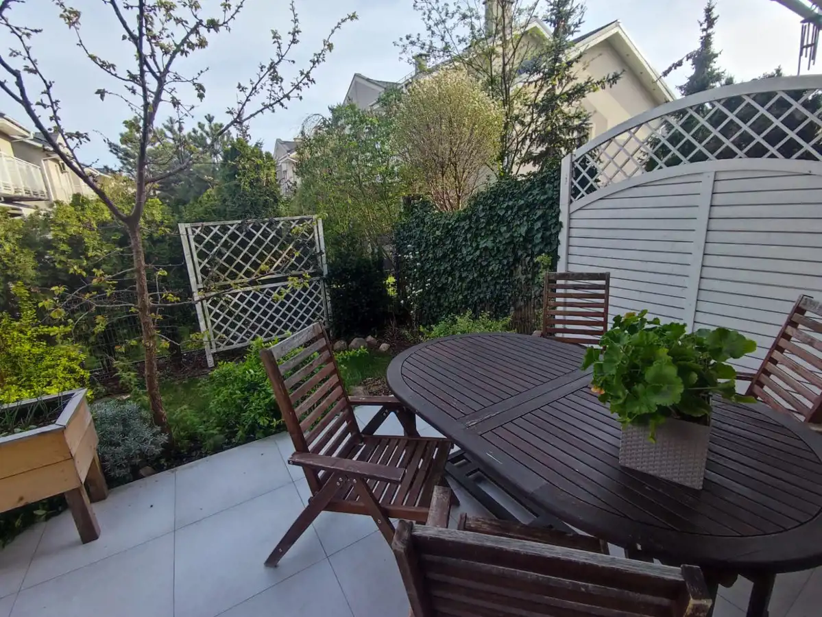 Dwa ogródki: pierwszy przed wejściem od strony ulicy (północny zachód), drugi z tarasem od strony ogródka (południowy wschód).