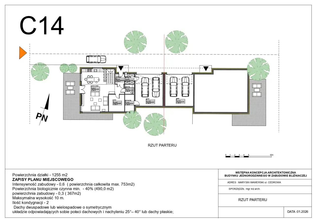 Lokalizacja: ul. Cedrowa 14, Marysin Wawerski – prestiżowa, spokojna okolica z niską zabudową jednorodzinną.