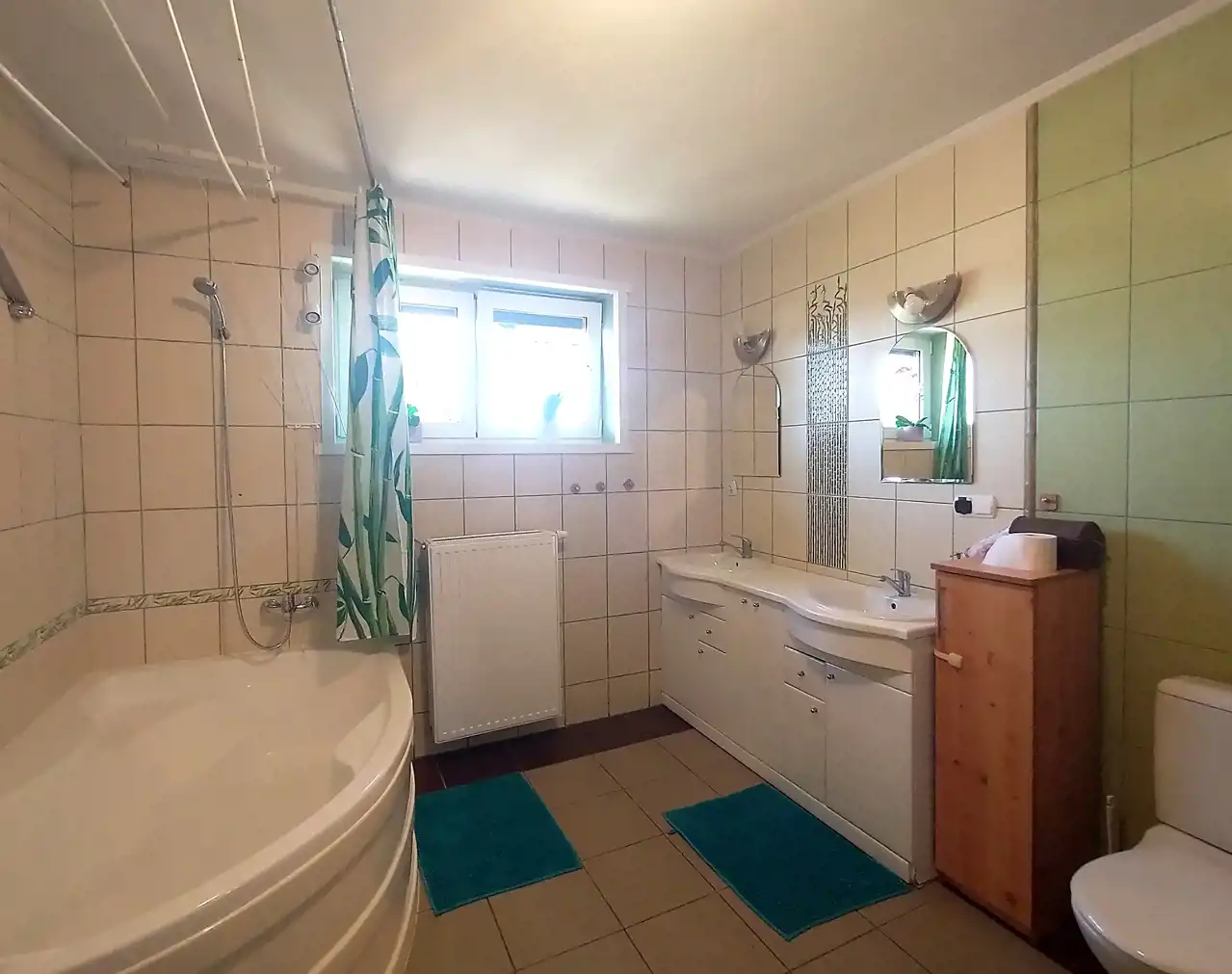 Łazienka na parterze została wyremontowana i zyskała ogrzewanie podłogowe. Na podłogach w pokojach położone są panele, w łazienkach terakota. Główna sypialnia ma dodatkowe ogrzewanie z instalacji kominka. Wymieniono okno balkonowe na parterze oraz w głównej łazience, a w garażu założono ocieplaną i szczelną bramę. Nowy kamienny taras został wyposażony w meble ogrodowe.