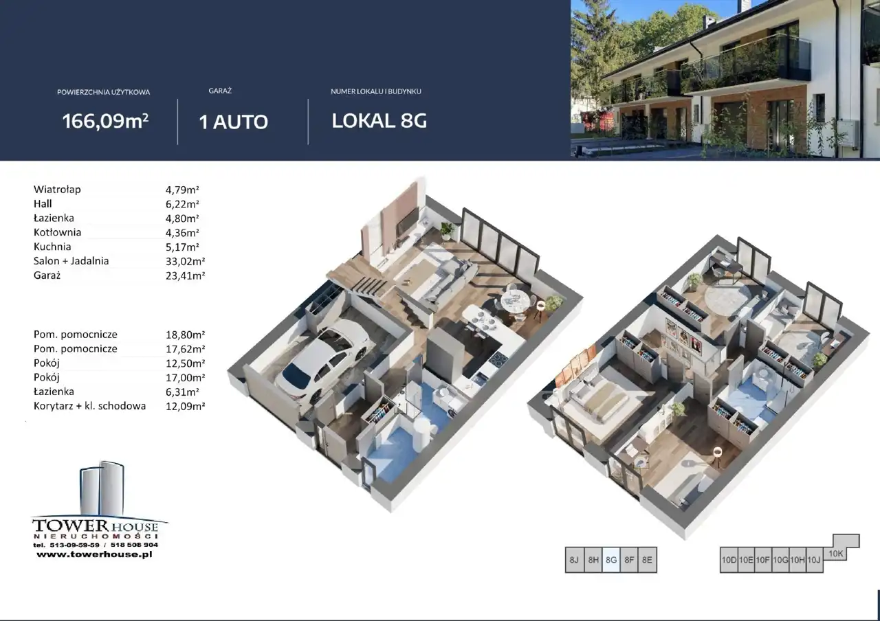 łazienka (4.8 m2 ), komunikacja ( 5.6 m2) wiatrołap (4.8 m2) , garaż (21 m2)+ miejsce postojowe ,kotłownia 4,3 m2)