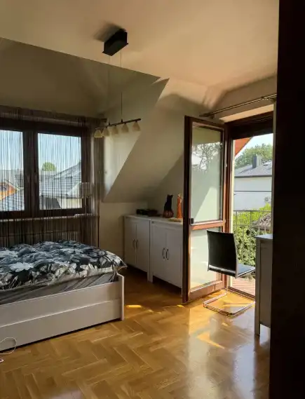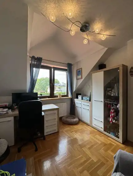 PIĘTRO: 4 sypialnie, w tym jedna z balkonem, dwie łazienki.