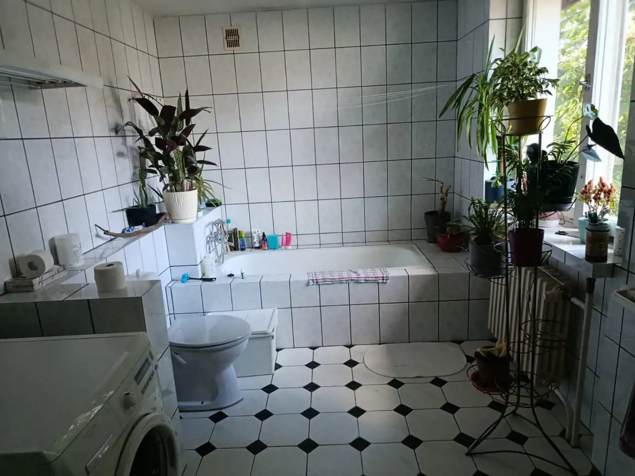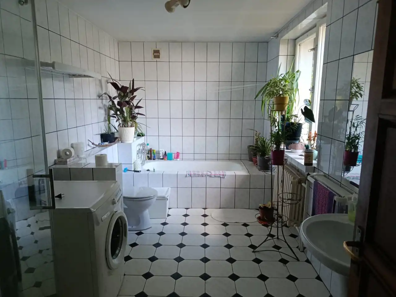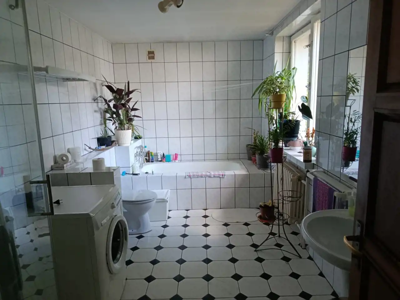 dwie duże łazienki z oknem, wanną, prysznicem i WC,