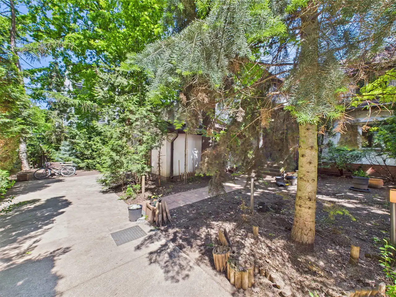 Na posesji znajduje się starodrzew oraz ogródek o powierzchni ok. 600 m². Dodatkowo właściciel ma udział w drodze wewnętrznej.