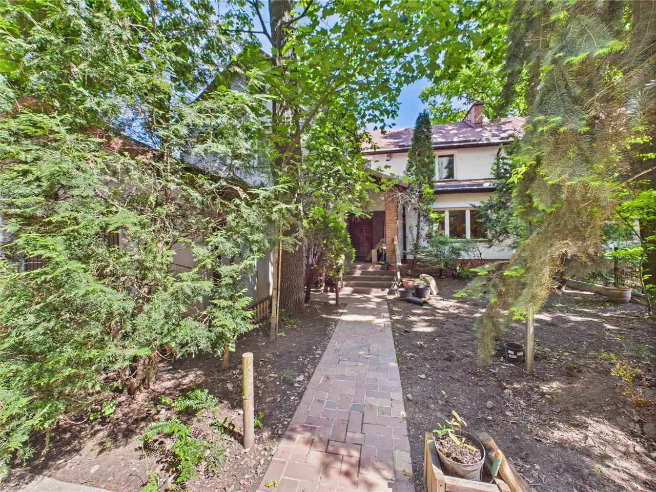 Główne atuty tej nieruchomości to: solidna konstrukcja z cegły z wysoką bezwładnością cieplną, kominek, możliwość adaptacji strychu oraz piękny ogród z dużą ilością zieleni.