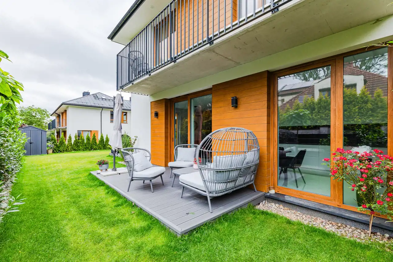 Dom o powierzchni użytkowej 150,78 m2 (działka: 344,50 m2), położony na terenie kameralnego osiedla z dala od miejskiego zgiełku a jednocześnie ze świetnym połączeniem komunikacyjnym z innymi częściami miasta dzięki pobliskiej trasie S2 oraz Wałowi Miedzeszyńskiemu (dojazd do Śródmieścia zajmuje ok. 25-30 minut, Wilanów - 9 minut)
