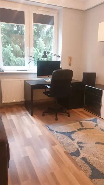 Parter: na parterze mieszkanie o powierzchni ok 110 metrów. Mieszkanie składa się z 4 pokoi. Trzech sypialni oddzielnych , salonu z kominkiem, jadalni połączonej z kuchnią, łazienki z wc, wc. Kuchnia w pełni umeblowana + zabudowany sprzęt AGD. Pokoje są puste ( nie umeblowane) , jest tylko stała zabudowa. Mieszkanie bardzo jasne, duże okna, dookoła dużo zieleni. Mieszkanie czyste, zadbane, wysokie pomieszczenia.