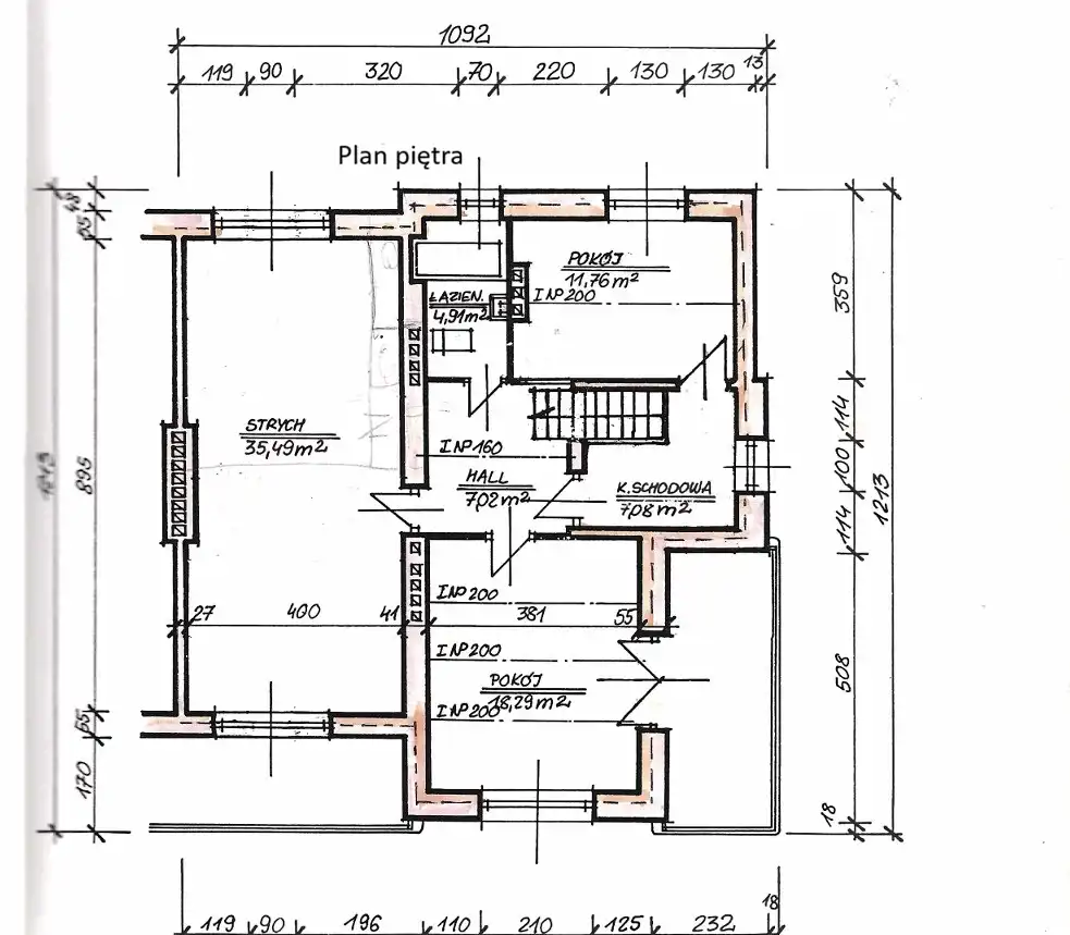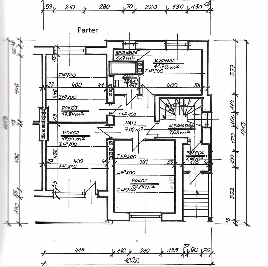 4 pomieszczenia i wymiarach 17, 36 m 2 11, 55 m 2, 16,96 m 2, 18, 52 m 2 4,41 m 2 6,86 m 2 klatka schodowa o pow. 6,96 m 2