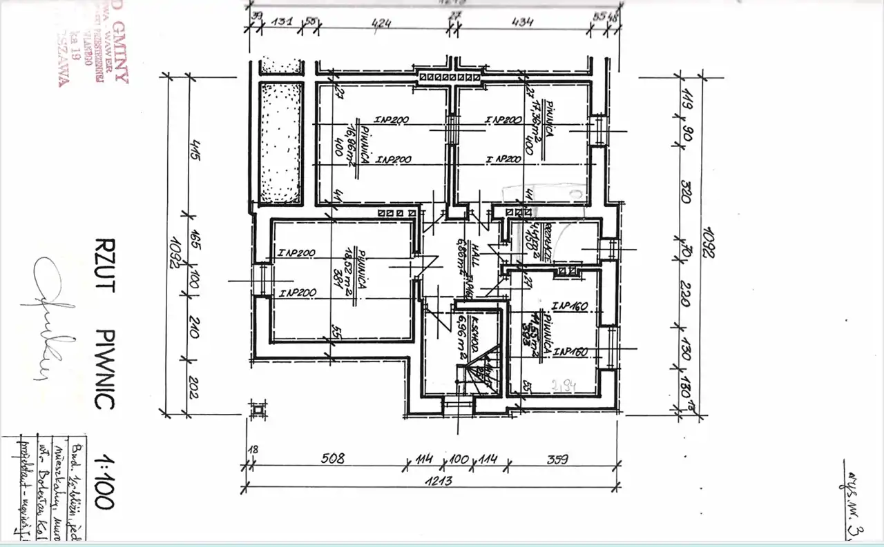 1) Podpiwniczenie o pow. 82,62 m 2.