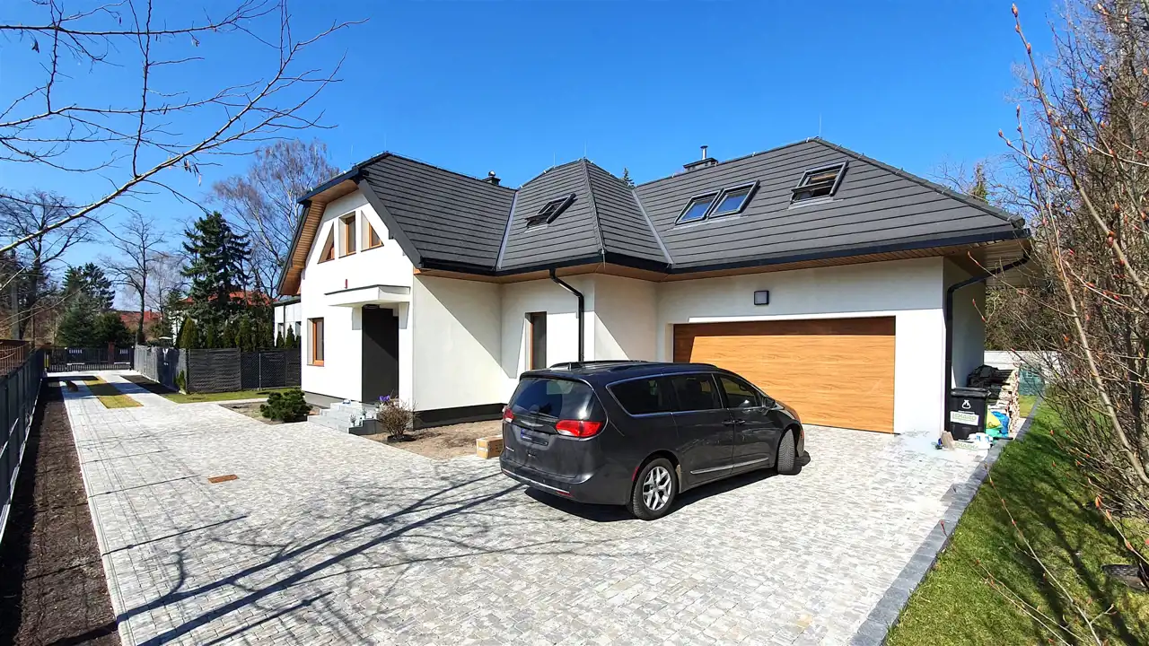 Dom o pow. całkowitej 493 m2 i pow. użytkowej 342 m2, podpiwniczony, z garażem na 2 samochody.