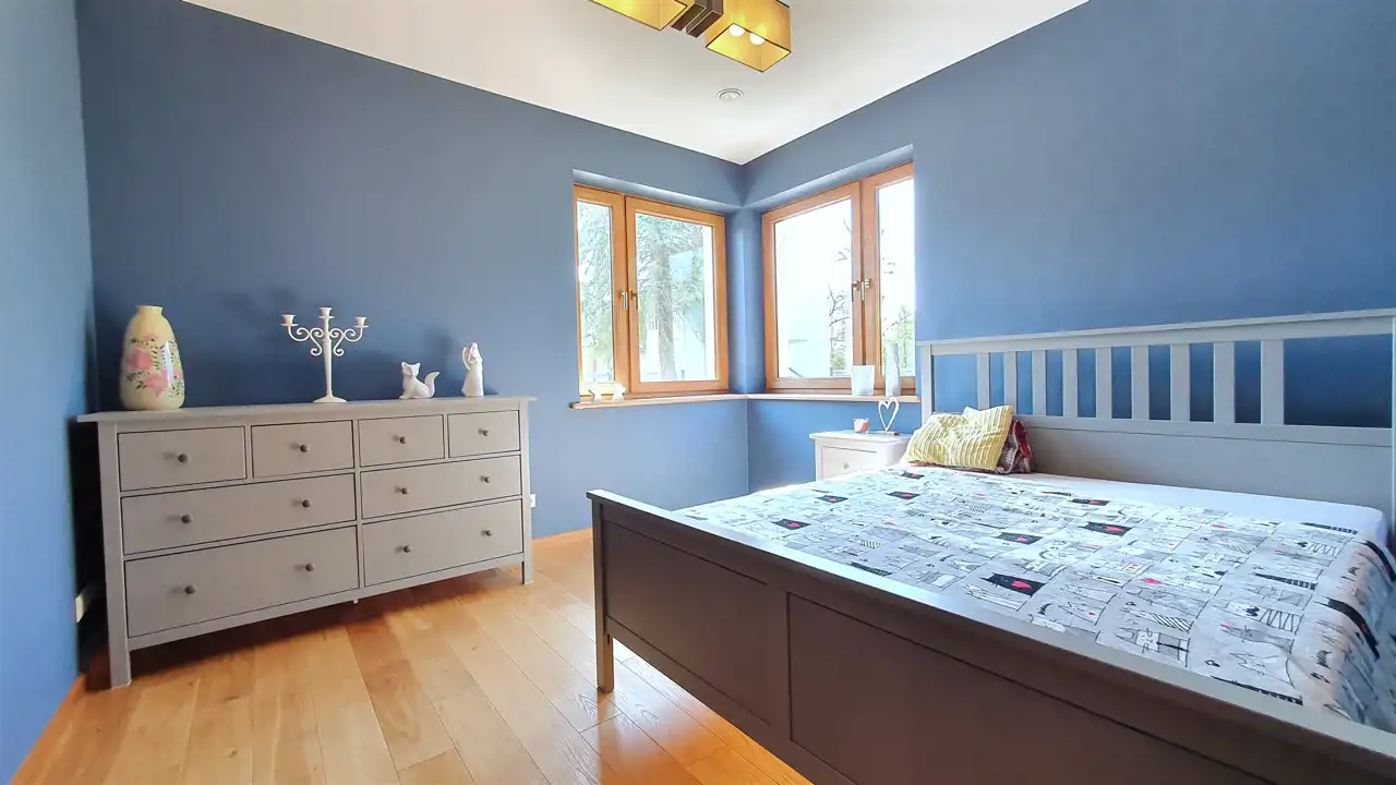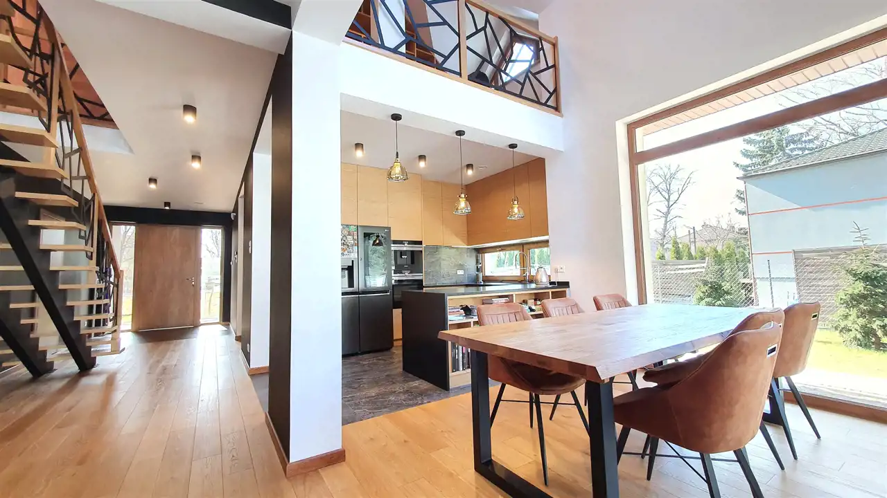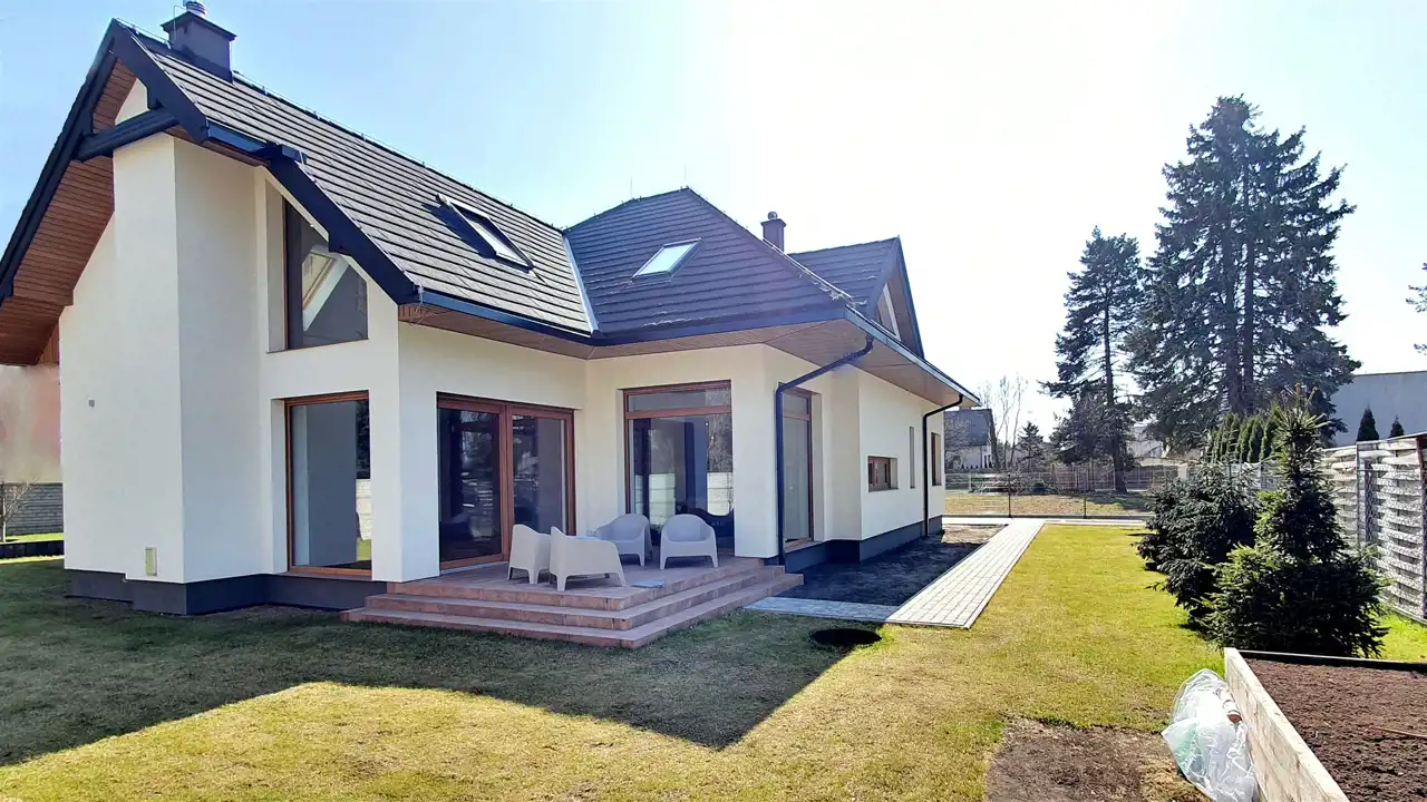 Dom oddany do użytku w 2021 roku, został wybudowany i urządzony z wykorzystaniem najnowocześniejszych technologii - w całym domu włącznie z piwnicami i garażem zastosowano ekonomiczne ogrzewanie podłogowe, które z połączeniu z rekuperacją sprawia, że koszty utrzymania tego dużego wolnostojącego domu są równe kosztom utrzymania 60 m2 mieszkania. Instalacja alarmowa, instalacja Tv i światłowodowa z centralką, sterowanie pogodowe piecem, videodomofon, rekuperacja ze sterowaniem.