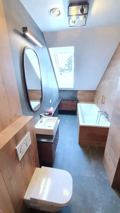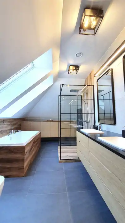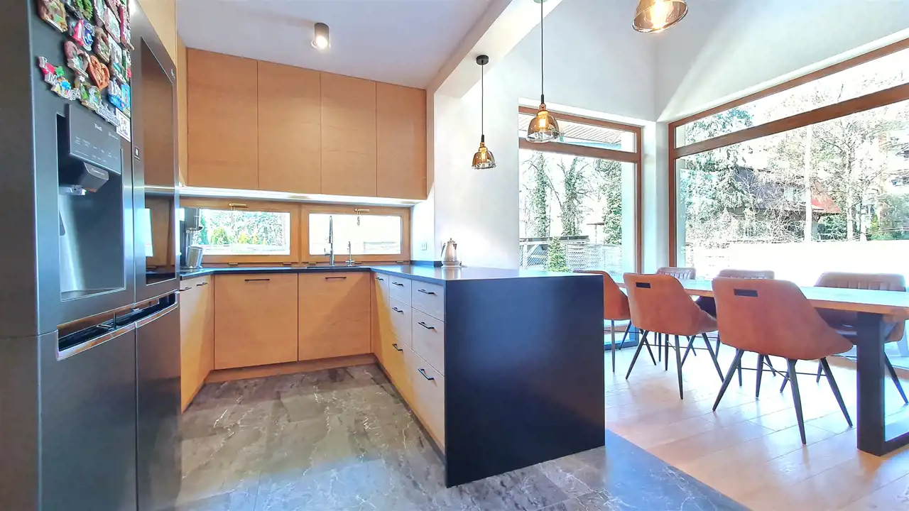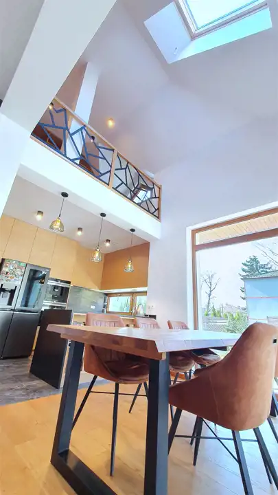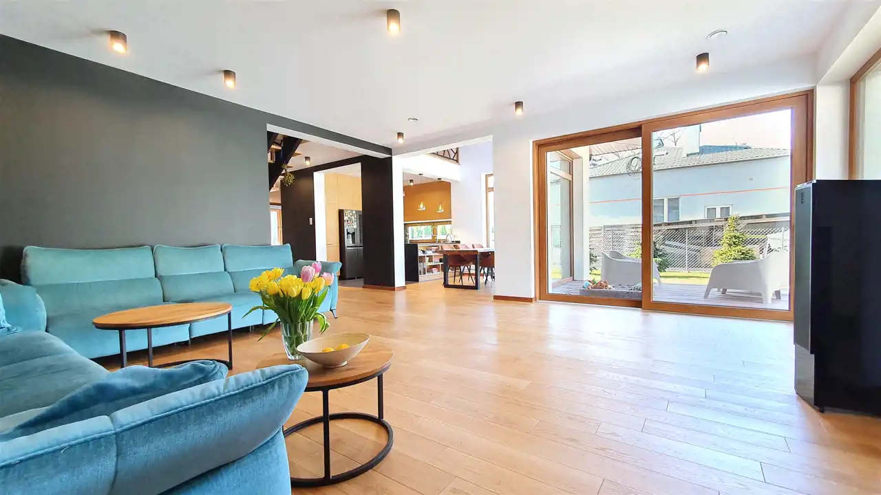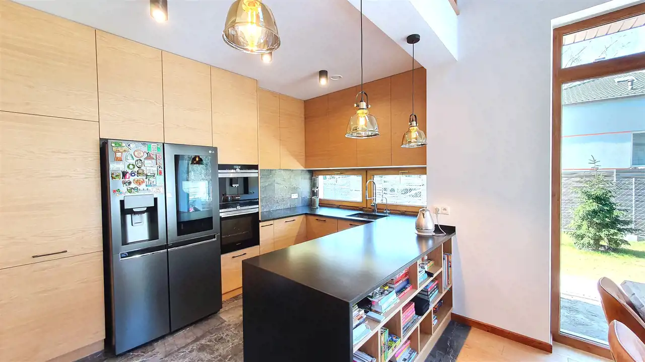 Dom oddany do użytku w 2021 roku, został wybudowany i urządzony z wykorzystaniem najnowocześniejszych technologii - w całym domu włącznie z piwnicami i garażem zastosowano ekonomiczne ogrzewanie podłogowe, które z połączeniu z rekuperacją sprawia, że koszty utrzymania tego dużego wolnostojącego domu są równe kosztom utrzymania 60 m2 mieszkania. Instalacja alarmowa, instalacja Tv i światłowodowa z centralką, sterowanie pogodowe piecem, videodomofon, rekuperacja ze sterowaniem.
