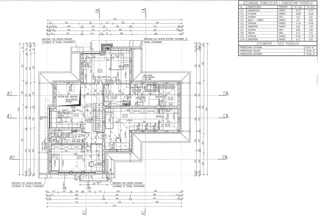 PIĘTRO: Sypialnia 25 m2, sypialnia 22 m2, sypialnia 21 m2, gabinet 9 m2, łazienka małżeńska z wanną 9 m2, łazienka rodzinna 5 m2, garderoba 8 m2, komunikacja.