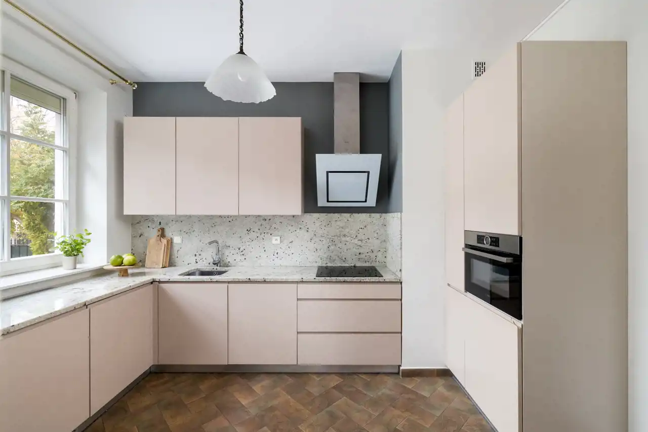 - Kuchnia w pełni wyposażona w sprzęt AGD, z blatami z włoskiego kamienia 9,9 m2.