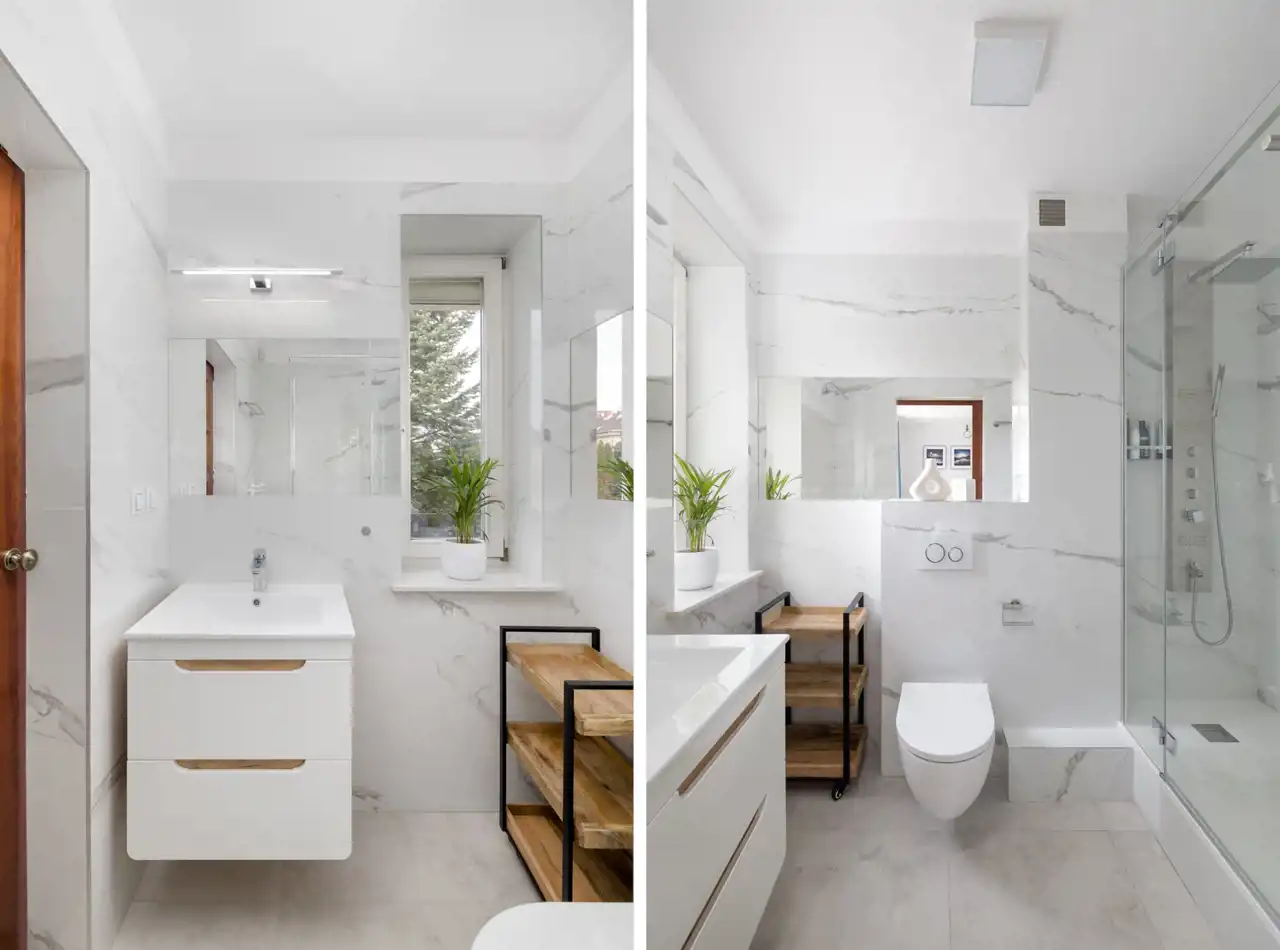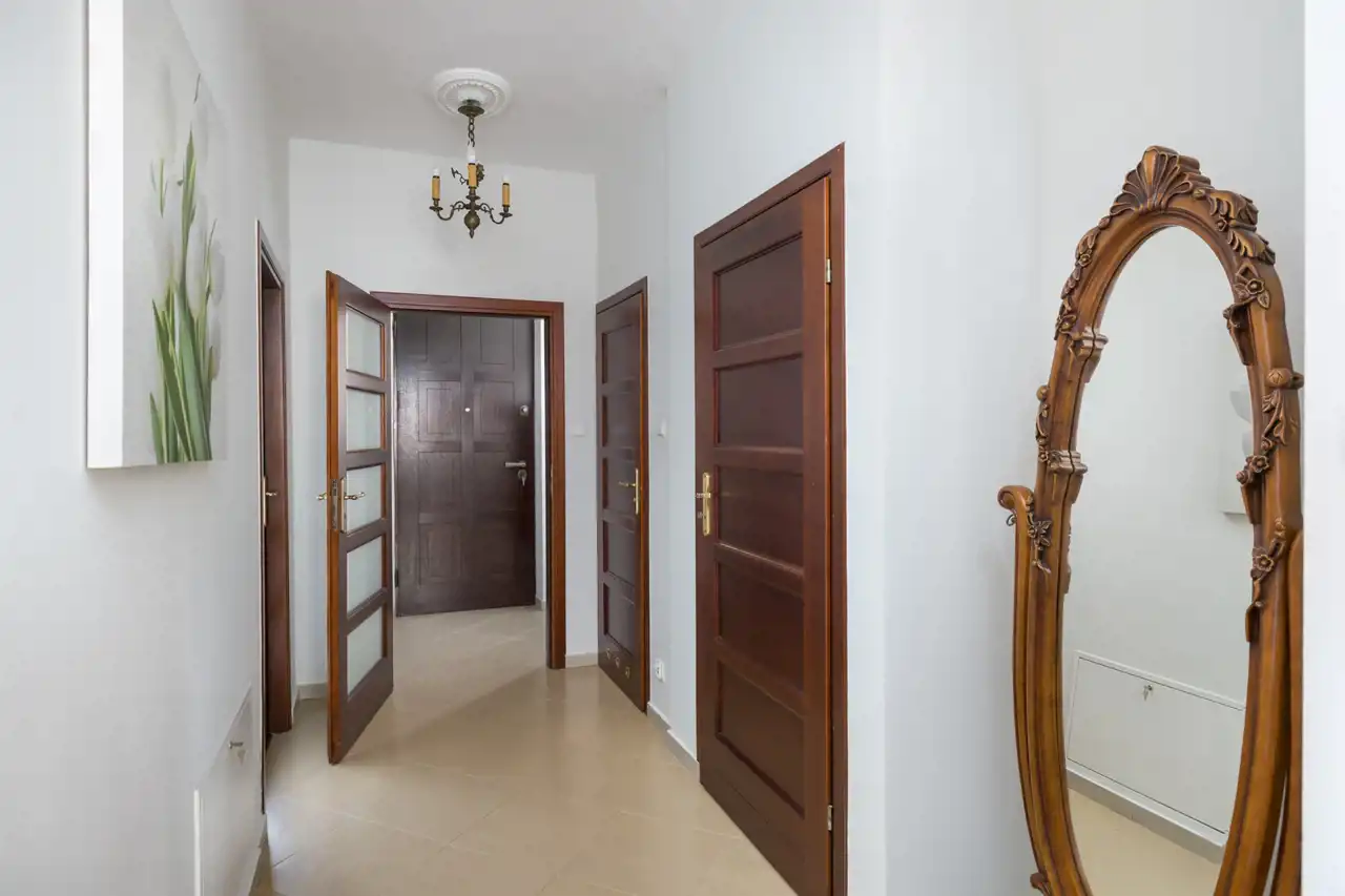 - Bardzo dobry standard wykończenia – drewno lite, kamień naturalny, klasyczna stolarka.