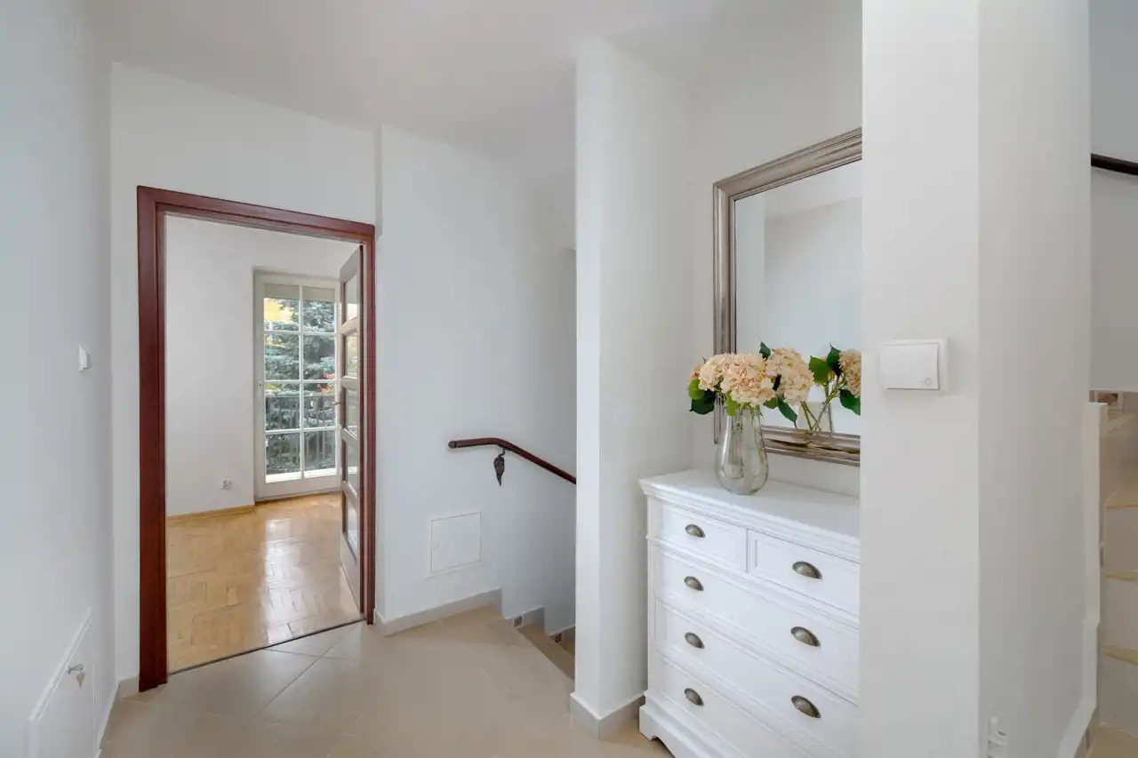 Przedmiotem oferty jest dom w zabudowie bliźniaczej o powierzchni całkowitej ok. 300 m², położony w prestiżowej i zielonej części Ursynowa – Pyry. Nieruchomość wyróżnia klasyczna architektura, bardzo dobry standard wykończenia oraz doskonale zaprojektowany układ pomieszczeń. To idealna propozycja dla osób poszukujących komfortu, spokoju i prywatności w otoczeniu przyrody, a jednocześnie chcących pozostać w dogodnym kontakcie z centrum Warszawy.