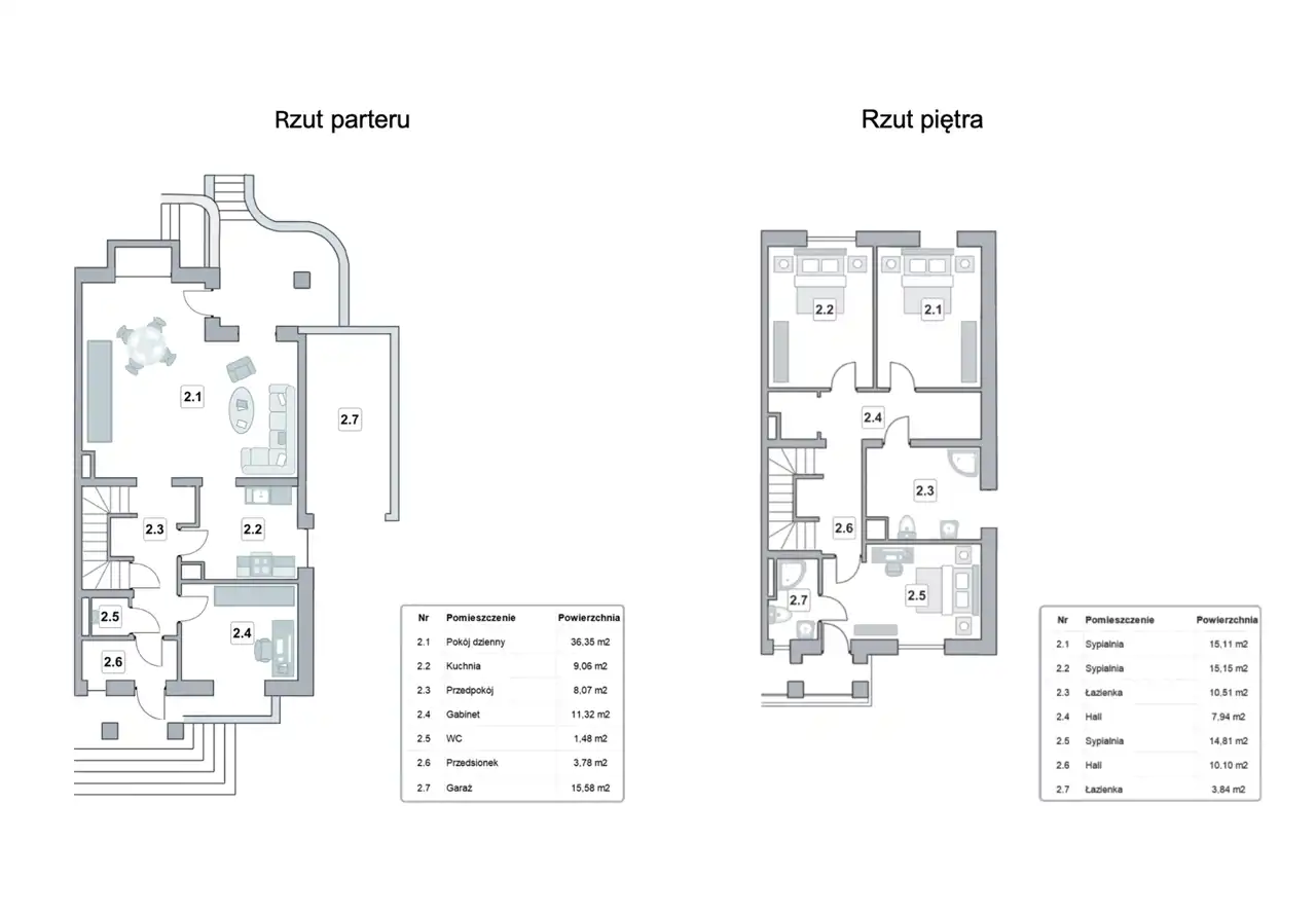 - Dwie dodatkowe sypialnie (15,11 m2, 15,14 m2)