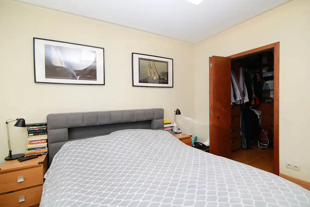trzy pokoje - sypialnia o pow. 13,6m2 połączona z garderobą o pow. 5,7 m2; sypialnia o pow. 15,7 m2 z zabudowaną szafą wnękową z wyjściem na balkon oraz sypialnia o pow. 13,6 m2 z szafą i wyjściem na balkon. Na podłodze wszystkich pokoi parkiet jesionowy. Duża łazienka z oknem o pow. 10 m2 wyposażona jest w przestronną kabinę prysznicową, toaletę, bidet i dużą ilość zamykanych szafek.