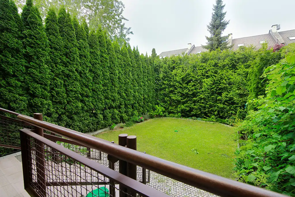Dom znajduje się w środku osiedla. Cichy, położony z dala od głównych ulic. Widok na ogród, i zamkniętą, wewnętrzną uliczkę.