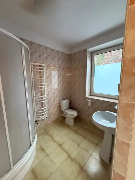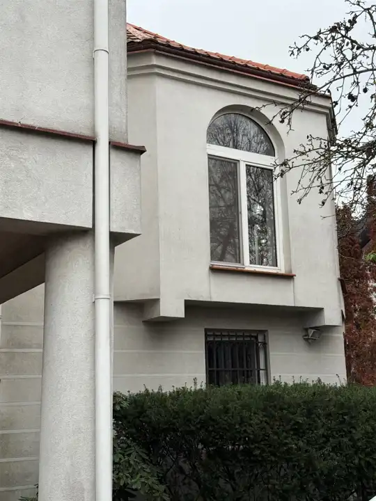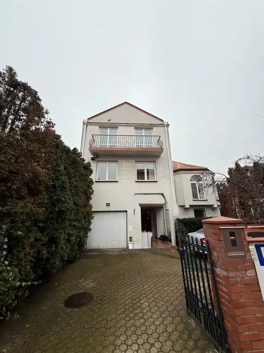 | Dom wolno stojący, w drugiej linii zabudowy. Parter: salon 58m2, kuchnia 15m2, łazienka, kotłownia, garaż. Piętro I: 4 pokoje - 31, 22, 21, 15m2, 3 łazienki. Poddasze: pokój 32m2 i dwa mniejsze ze skosami, łazienka. Powierzchnia całkowita 440 m2, powierzchnia użytkowa 319 m2 (liczona bez schodów, skosów itp.). Garaż i brama wjazdowa otwierane pilotem. ogrzewanie własne gazowe, umeblowana kuchnia, zmywarka, |