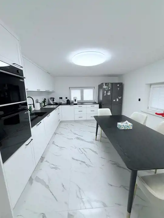 Dom posadowiony na ładnej działce, wnetrze po generalnym remoncie w 2025 r., wykończony w wysokim standardzie. Pełne wysposażenie najwyższej jakości.