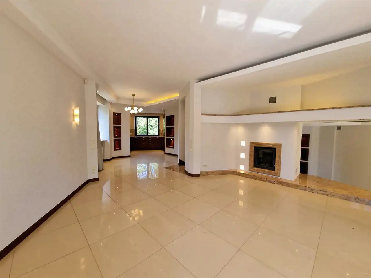 Parter: salon z kominkiem, jadalnia, kuchnia, gabinet/pokój gościnny i łazienka. Z salonu wyjście na duży taras i do zadbanego ogródka. I piętro: sypialnia główna z kominkiem, łazienką i garderobą, 2 sypialnie, łazienka. II piętro: przestrzeń otwarta,2 sypialnie, łazienka. Piwnica: pokój kinowy z opuszczanym ekranem, bar(z pokoju wyjście na zewnątrz), jacuzzi, sauna, łazienka, WC, pralnia, szatnia. Garaż na 2 samochody.