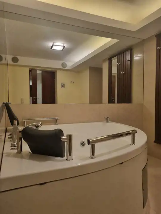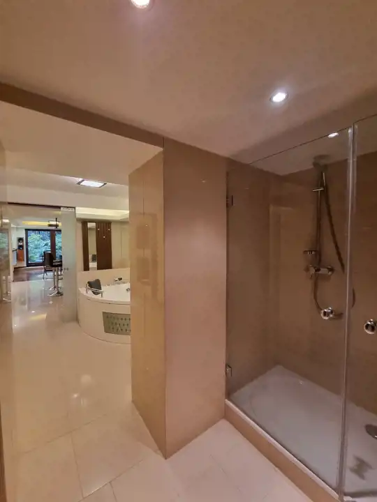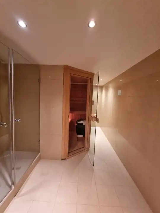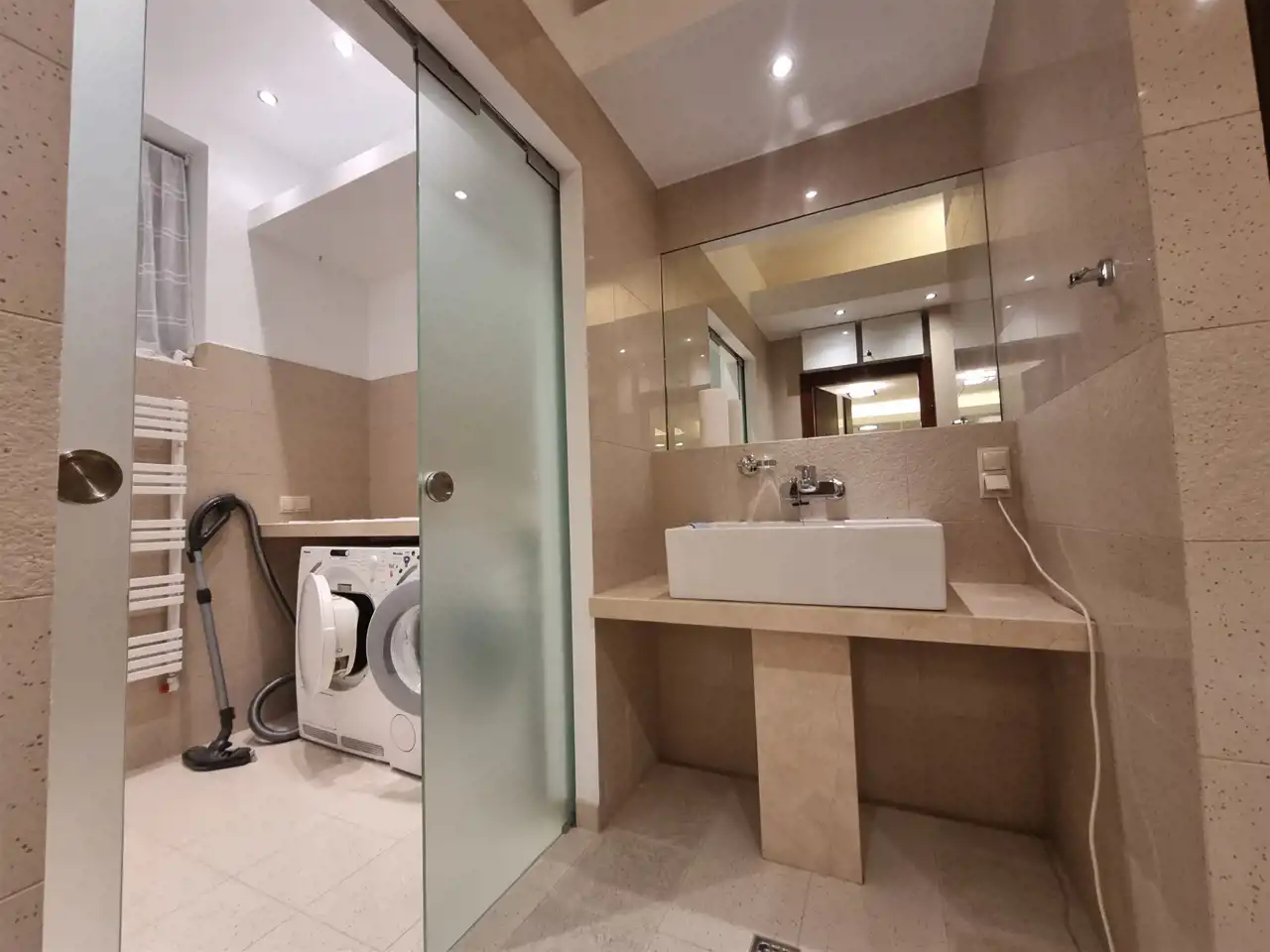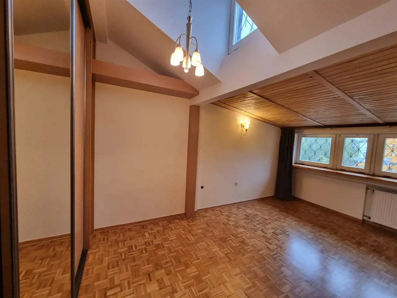 Ground floor: living room with fireplace, dining area, kitchen, study room/guest bedroom and bathroom. From the living room entrance to the large terrace and nice garden. Basketball field next to the house.. Ist floor: master bedroom with walk-in closet and bathroom, 2 bedrooms, bathroom. Attic: open space, 2 bedrooms, bathroom. Basement:cinema room with bar, sauna,jacuzzi, bathroom, WC, laundry. Garage for 2 cars. High quality of finsihing.