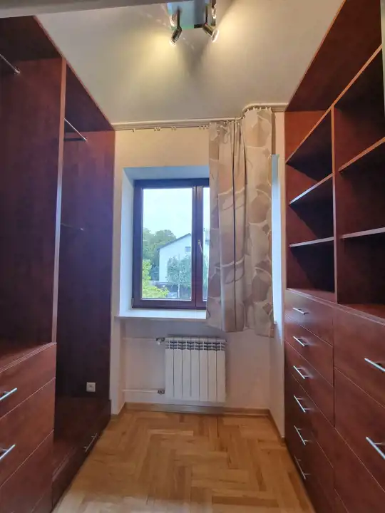 Spacious semi-detached house in prestigious part of Old Sadyba, only 10-15 minutes walking to buses, trams, Sadyba Best Mall, Lycee Francais de Varsovie, The British School. Close to small parks- only 5 minutes walking and 20 minutes walking to Czerniakowskie lake.